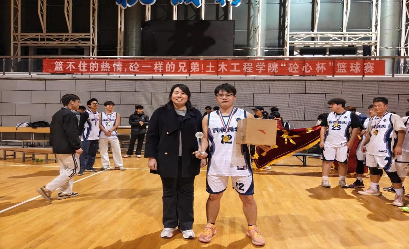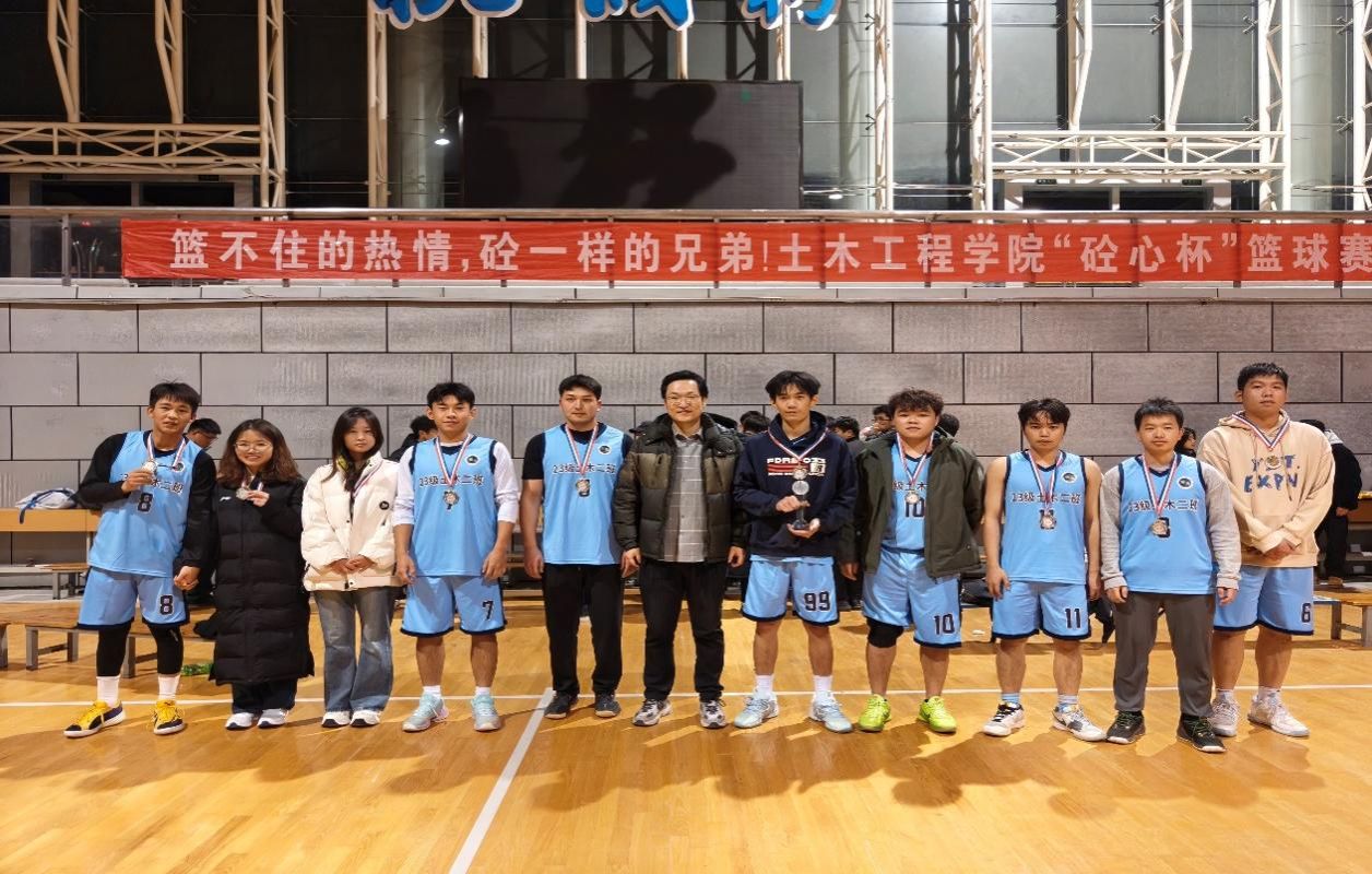 球员们在攻防之间默契配合,在胜负之际握手致意,展现出土木学子团结协作、尊重对手的体育风尚。决赛场上,双方队伍全力以赴、顽强拼搏,一次次抢断、快攻、投篮,彰显出土木青年坚韧不拔、勇攀高峰的精神底色。最终,2023级道路桥梁与渡河工程3班代表队凭借出色配合与关键表现摘得桂冠,捧起象征荣誉的“砼心杯”;2023级土木工程2班代表队荣获亚军,2025级道路桥梁与渡河工程3班代表队获得季军。