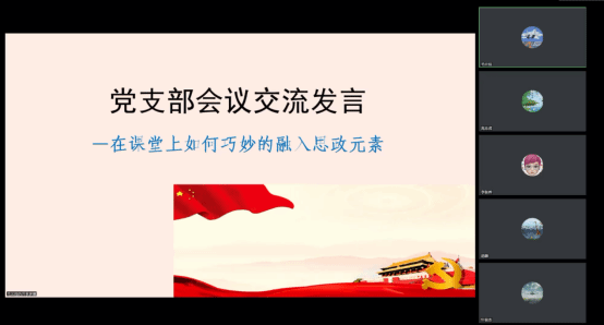 教工第一党支部在连续三个月的主题党日活动中,安排了吴忠铁、马宏斌、李朝晖、毛云程、高忠虎、路韡、赵文玉等党员教师作重点发言,主要从指导学生学科竞赛,科学研究与教学融合,教学和社会服务相融合,发明专利,课程教学心得,教学演示,在课堂上如何巧妙融入思政元素等方面分享、交流经验与心得体会,其他党员教师进行交流发言,谈学习心得、感受。