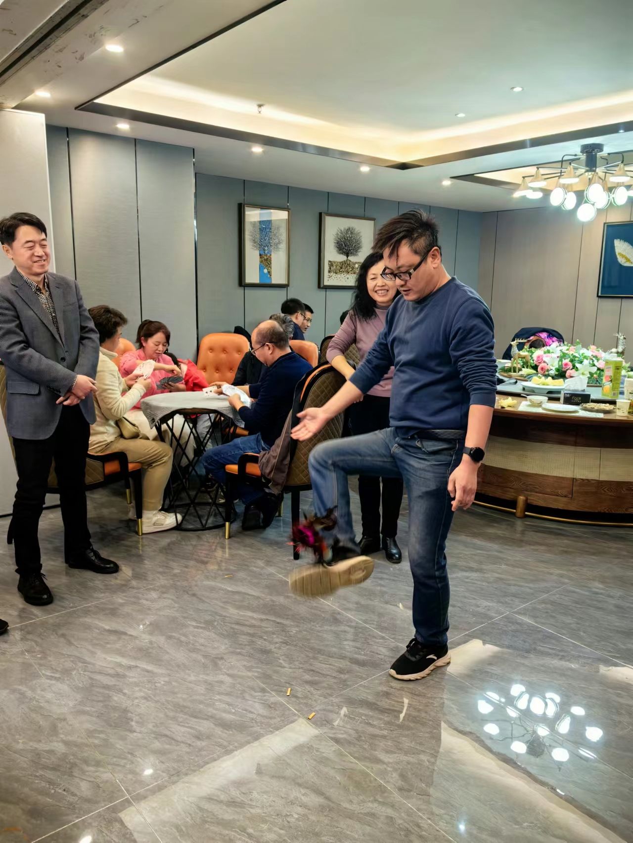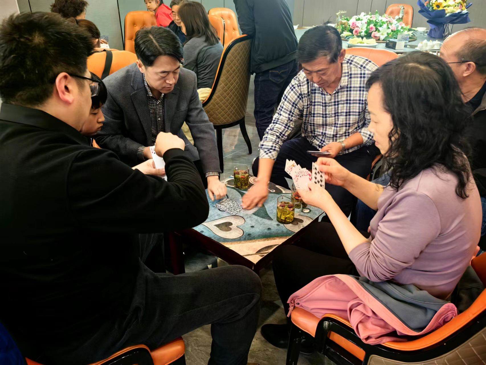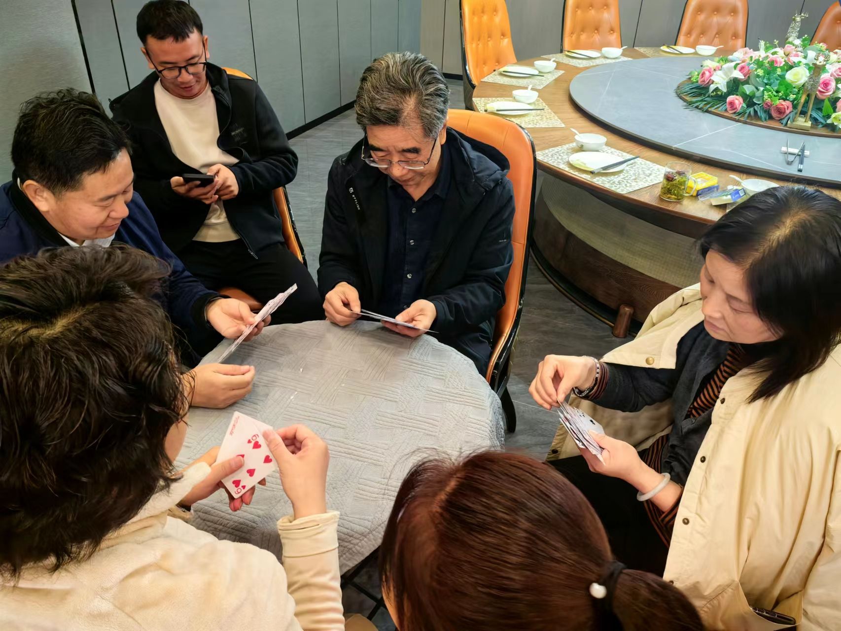 为增加活动的竞技性和趣味性,本次活动分为两大类:棋牌比赛和趣味小游戏。棋牌比赛设有扑克牌双扣比赛和五子棋比赛。趣味小游戏包括踢毽子、“抢凳子”“喊数抱团”等项目。大家积极参与,配合默契,现场气氛热烈融洽,掌声、喝彩声、欢呼声此起彼伏。