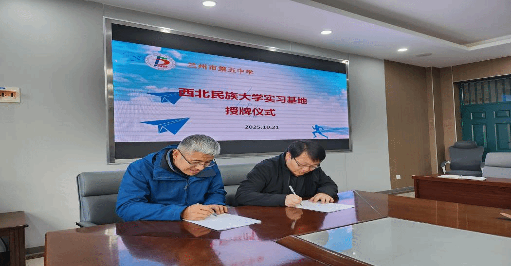 为深化高校与基础教育的协同合作,创新人才培养模式,2025年10月21日,体育学院副院长朱惠平一行赴兰州市第五中学,双方就共建实习基地、深化产学研合作、拓展就业渠道等事宜进行了深入洽谈并达成共识,并举行了西北民族大学体育学院与兰州市第五中学隆重教育实习基地签约暨挂牌仪式。