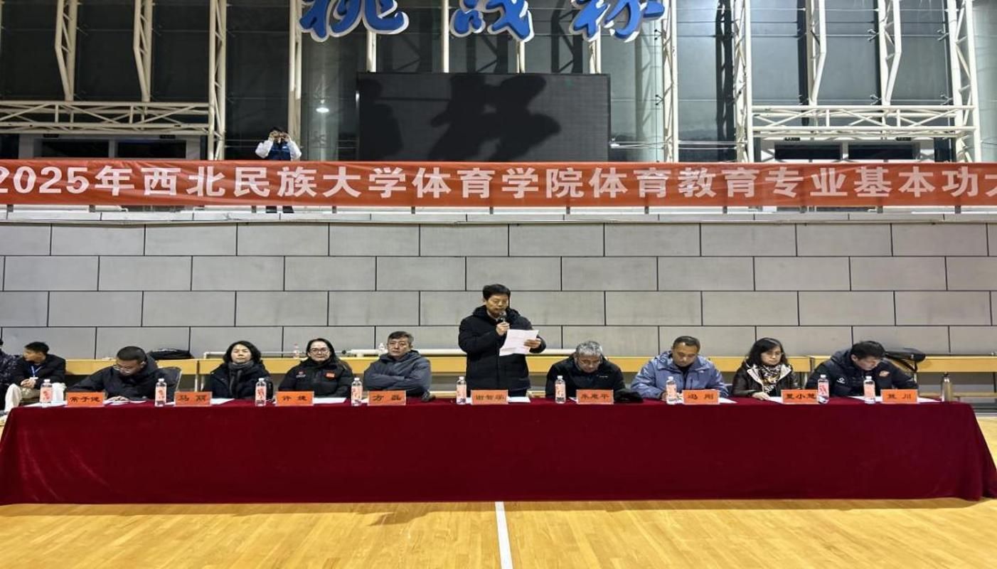 12月17日晚, 2025年体育学院体育教育专业教学基本功大赛在榆中校区篮排馆成功举办。大赛以 “锤炼教学本领,赋能专业成长” 为主题, 设置集体队列队形展示和说课两个环节。体育教育系2023级、2024级、2025级6个班的200余名学生现场观赛,同台竞技。