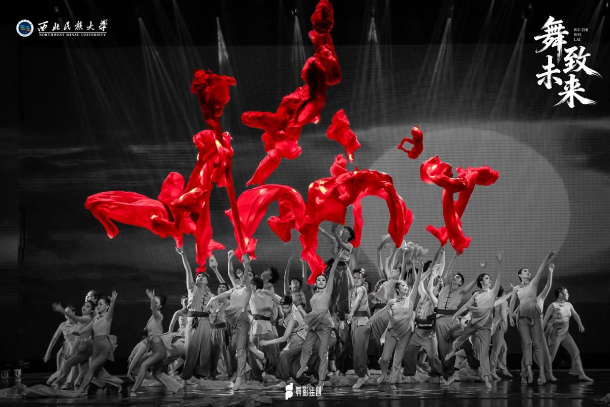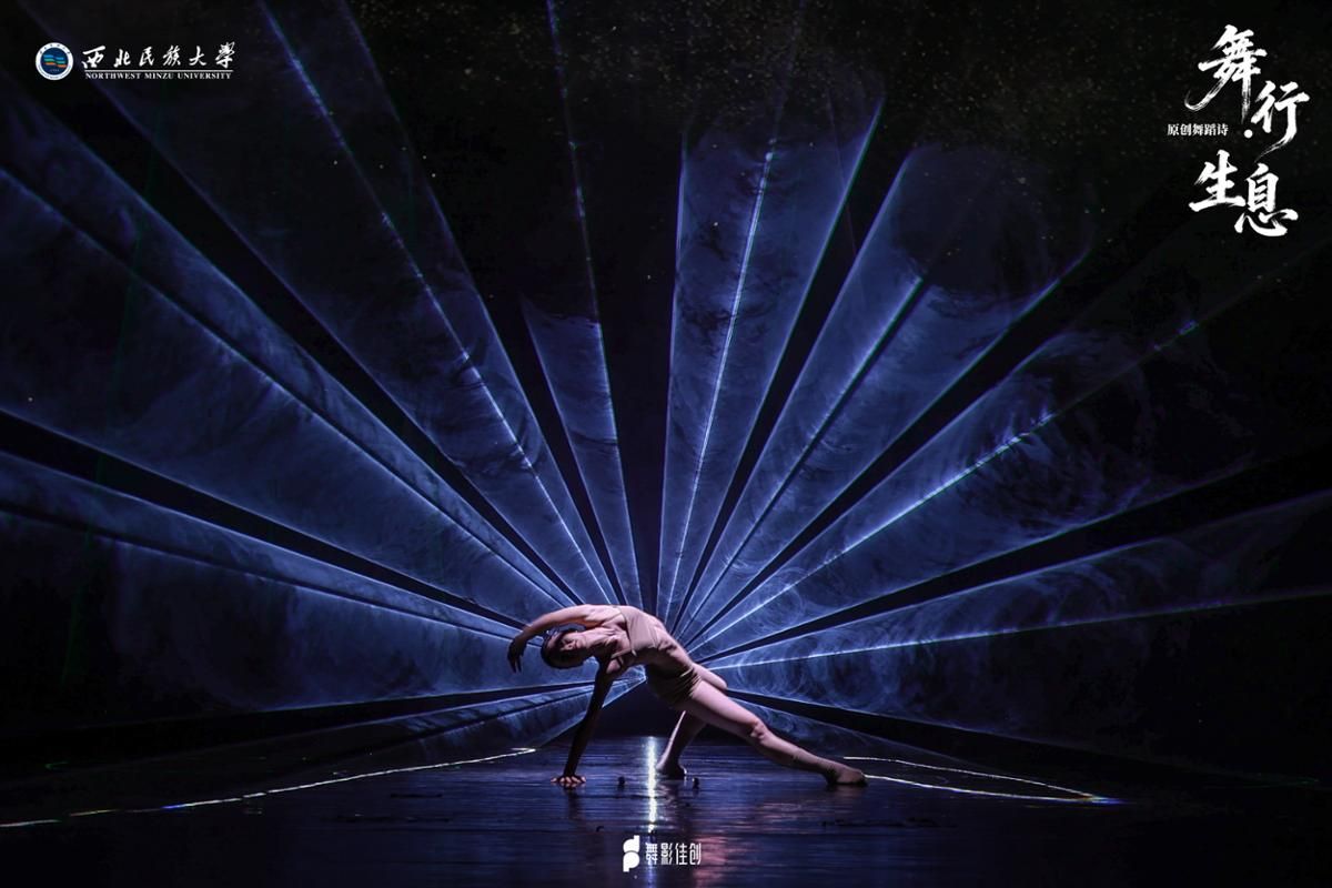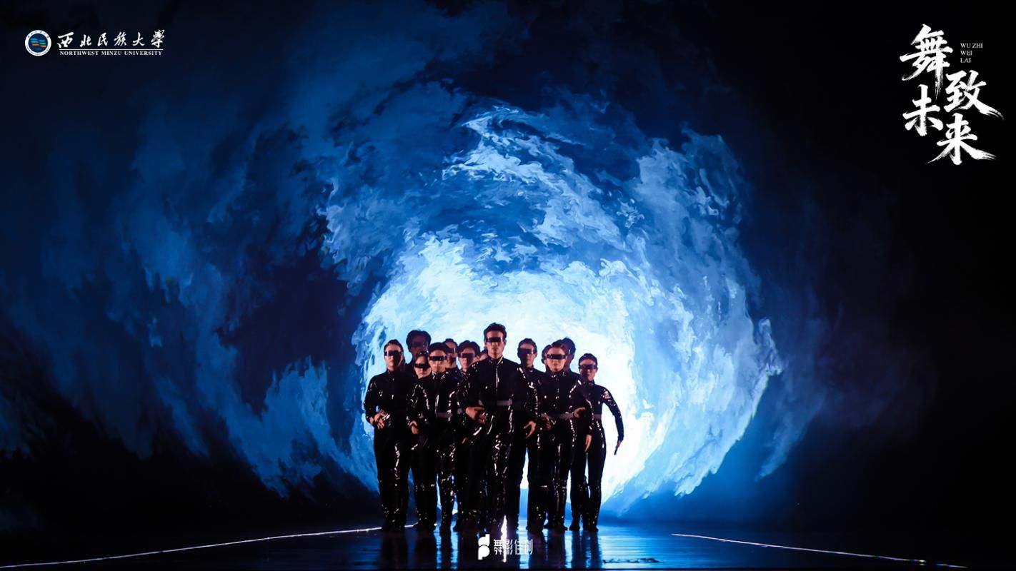 本次汇报演出分为专业硕士原创舞蹈诗《舞行·生息》与本科生专场晚会《舞致未来》。前者以“归源·根生”“流光·遍野”“舞行·生息”三个篇章展开,既呈现黄河水润泽生命的宏大叙事,亦将田野调查中的学术思辨转化为充满张力的肢体语言,在动静流转中勾勒生命从内观、共融到赓续前行的精神轨迹。后者则围绕“传、承、创”三大主题,融合课程展示与编创作品,既系统呈现学子扎实的专业功底与艺术理解,更通过舞蹈与科技的交互融合,营造出穿越时空、漫游星野、奔向未来的视听意象,彰显新一代舞人的探索姿态与开阔视野。