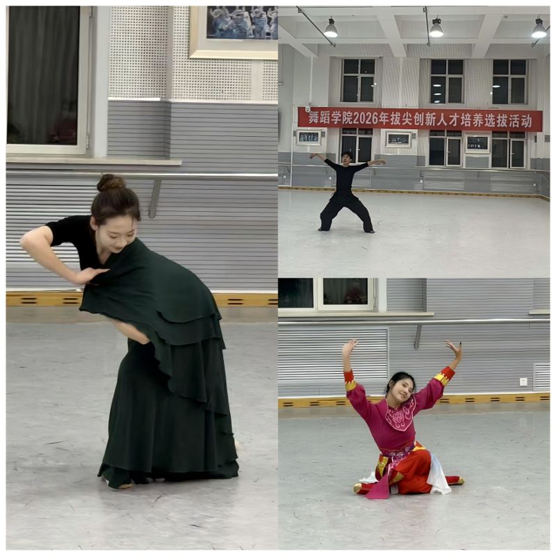 本次选拔严格依照《舞蹈学院2026年度拔尖创新人才培养计划选拔综合考核实施方案》要求进行。考核采用技术技巧、剧目展示、现场命题即兴编舞、年度创作方案答辩相结合的形式,重点考察考生核心舞蹈技艺、即兴创作能力,以及对敦煌舞、民族民间舞的掌握与诠释能力;面试答辩则围绕文化素养、创新思维、赛事适配性及职业规划展开,全面评估学生的综合潜力,兼顾表演与编创两大选拔方向的不同能力要求。