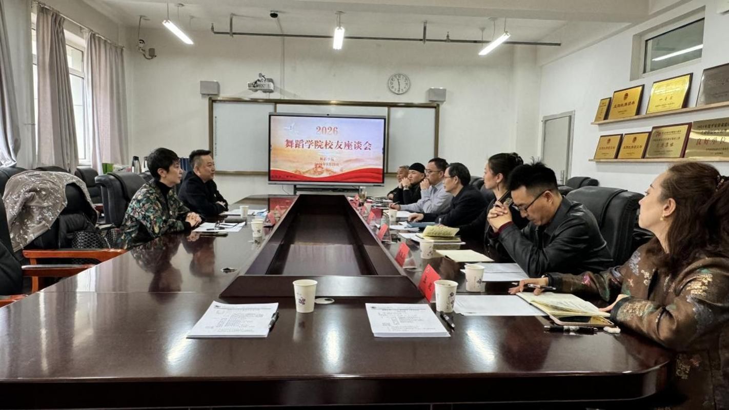 近日,1985届舞蹈专业优秀校友、宁夏文联副主席、宁夏舞蹈家协会主席、北方民族大学音乐舞蹈学院教授刘庄,1985届舞蹈专业优秀校友、海南省舞蹈家协会主席、海南大学国际传播与艺术学院教授白金峰重返母校。2026年3月23日,舞蹈学院在舞蹈楼701会议室召开校友座谈会,两位校友与学院领导、教师代表欢聚一堂,共忆校园时光,共话学院发展。学校党委副书记石迎春、对外联络办公室相关负责同志参加活动。