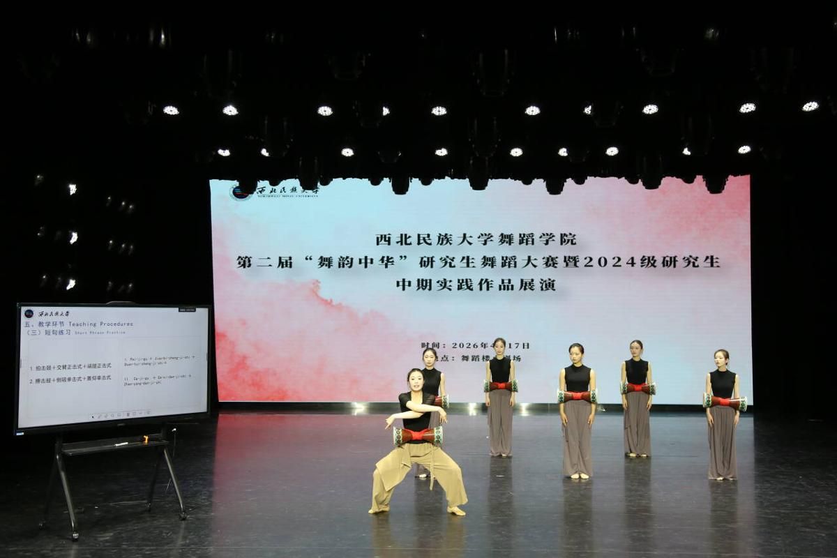 2026年4月17日,西北民族大学舞蹈学院联合校团委、党委研究生工作部、研究生院,在舞蹈楼小剧场成功举办第二届“舞韵中华”研究生舞蹈大赛暨2024级研究生中期实践作品展演,为全院师生呈现了一场兼具艺术性、学术性与思想性的视觉盛宴。