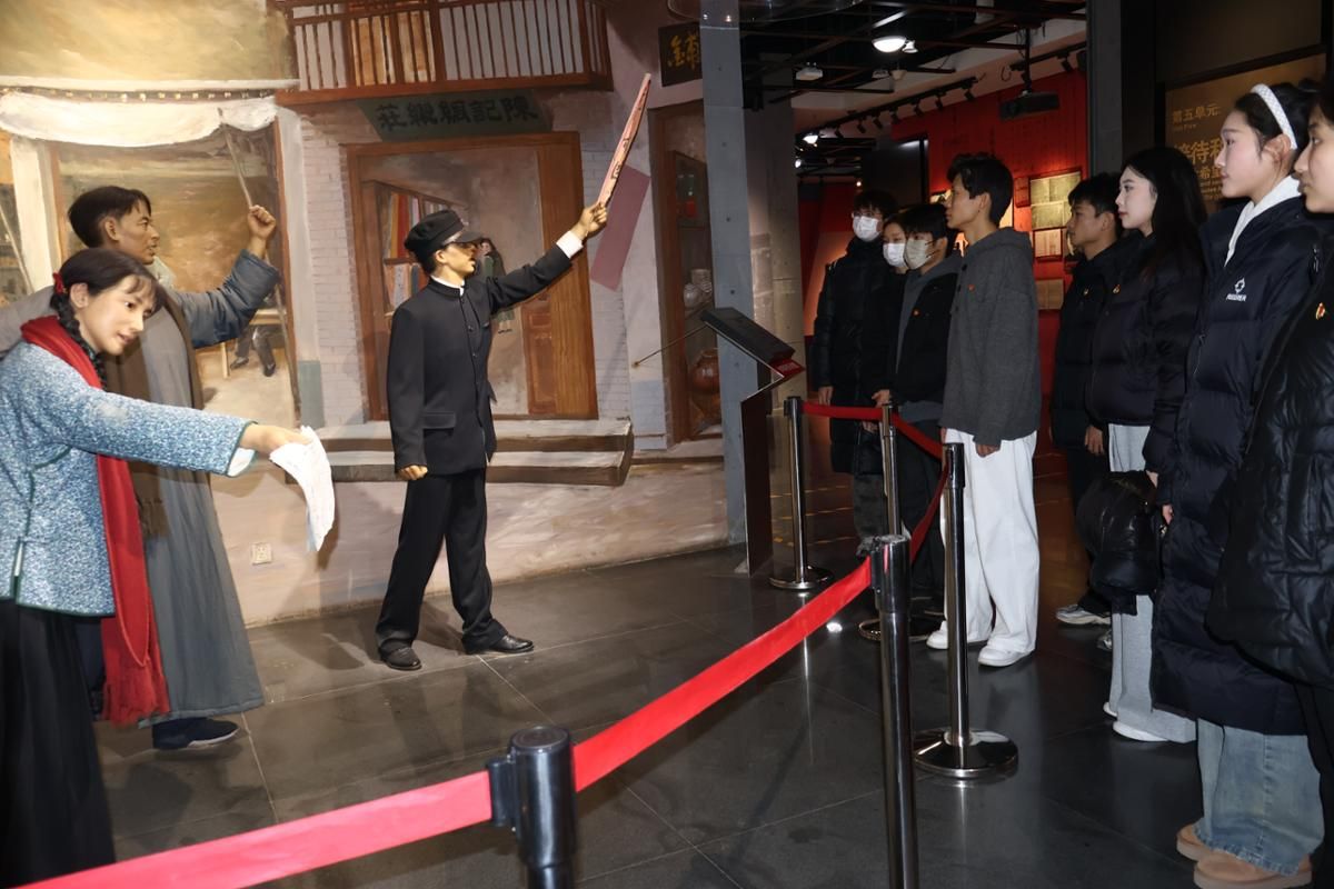 在互动交流环节,青年党员们围绕“红色文化如何融入舞蹈创作”展开热烈研讨。李世星同志感慨道,“这次参观学习使我明白了,真正有感染力的作品需要注入精神内核。未来我想尝试将革命故事转化为具象化的艺术表达,让红色精神通过舞姿传递给更多观众。”向文杰同志说,“原来红色主题创作不是简单的符号堆砌,而是要深入挖掘历史细节中的情感,作为艺术类专业的一名学生党员,要发挥专业优势,以文艺作品为媒介,让红色故事跨越时空、走进大众,成为红色精神的践行者。”