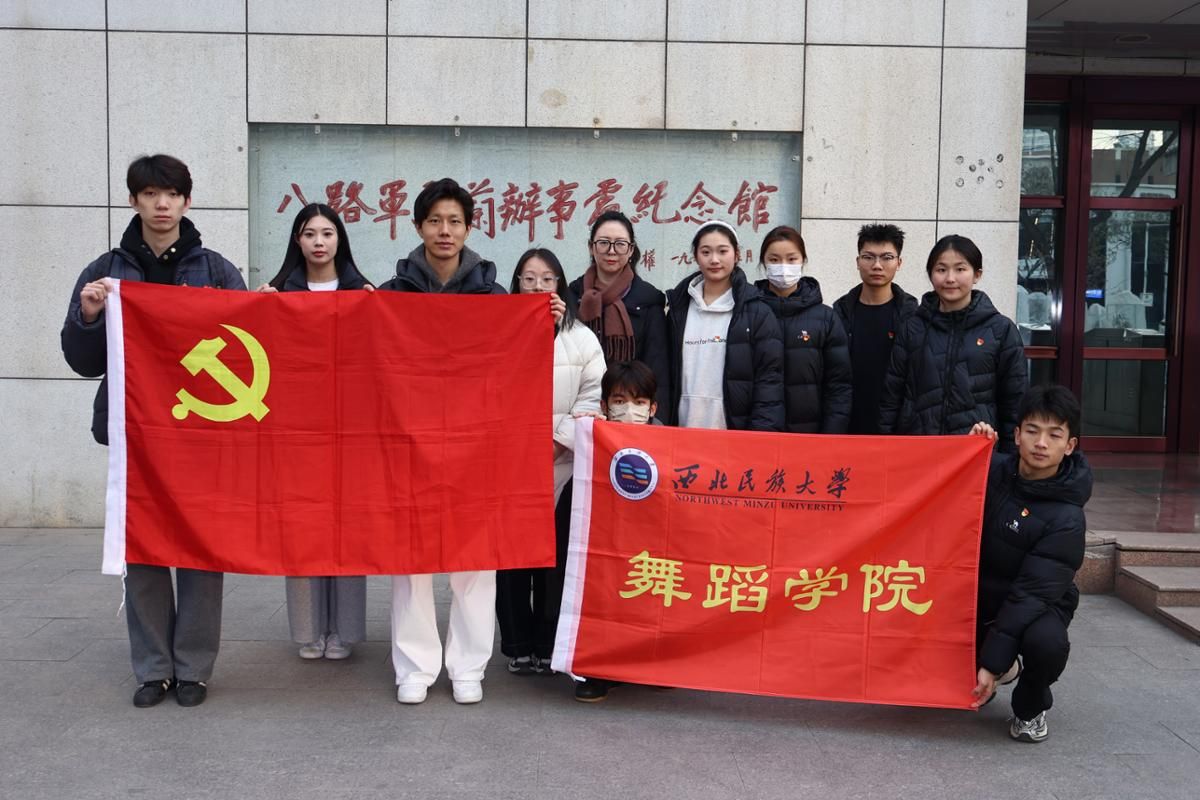 为深化红色文化传承,弘扬爱国主义精神,推动党支部工作与专业实践深度融合,引导青年党员从革命历史中汲取创作灵感,近日,舞蹈表演学生党支部组织青年党员前往兰州八路军办事处纪念馆开展“追寻红色足迹·赋能艺术创作”——赴革命纪念馆研学实践活动。本次活动旨在通过实地参观、现场教学,引导党员同志们厚植爱国情怀,铸牢中华民族共同体意识,在沉浸式体验中感悟革命初心,凝聚艺术担当。