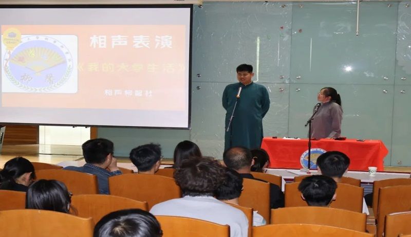 文艺表演环节亮点频出。徐松华等同学带来外文歌曲串烧,以多元语言传递青春活力;相声《我的大学生活》用诙谐叙事事件引发阵阵笑声;歌曲《这世界那么多人》倾诉同窗情谊。抢凳子游戏将气氛推向高潮,大合唱《不说再见》则饱含对校园的眷恋。