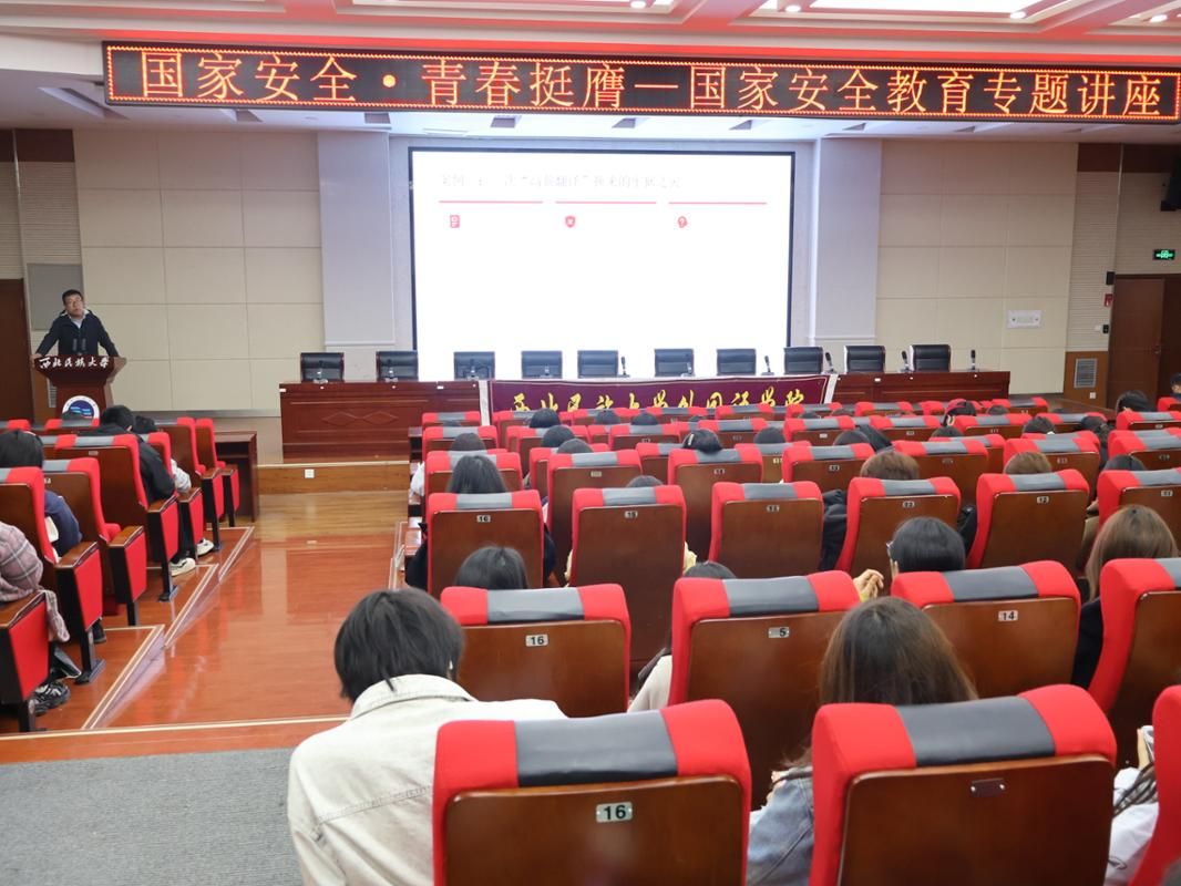 2026年4月15日,外国语学院组织学生参观了国家安全教育展馆,并在致真楼125举办国家安全教育专题讲座。兰州市公安局新闻宣传中心宣传警察王雨璇、法学院副教授程荣应邀主讲,副院长张荣、辅导员黎林及各年级学生参加。