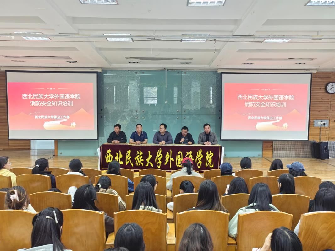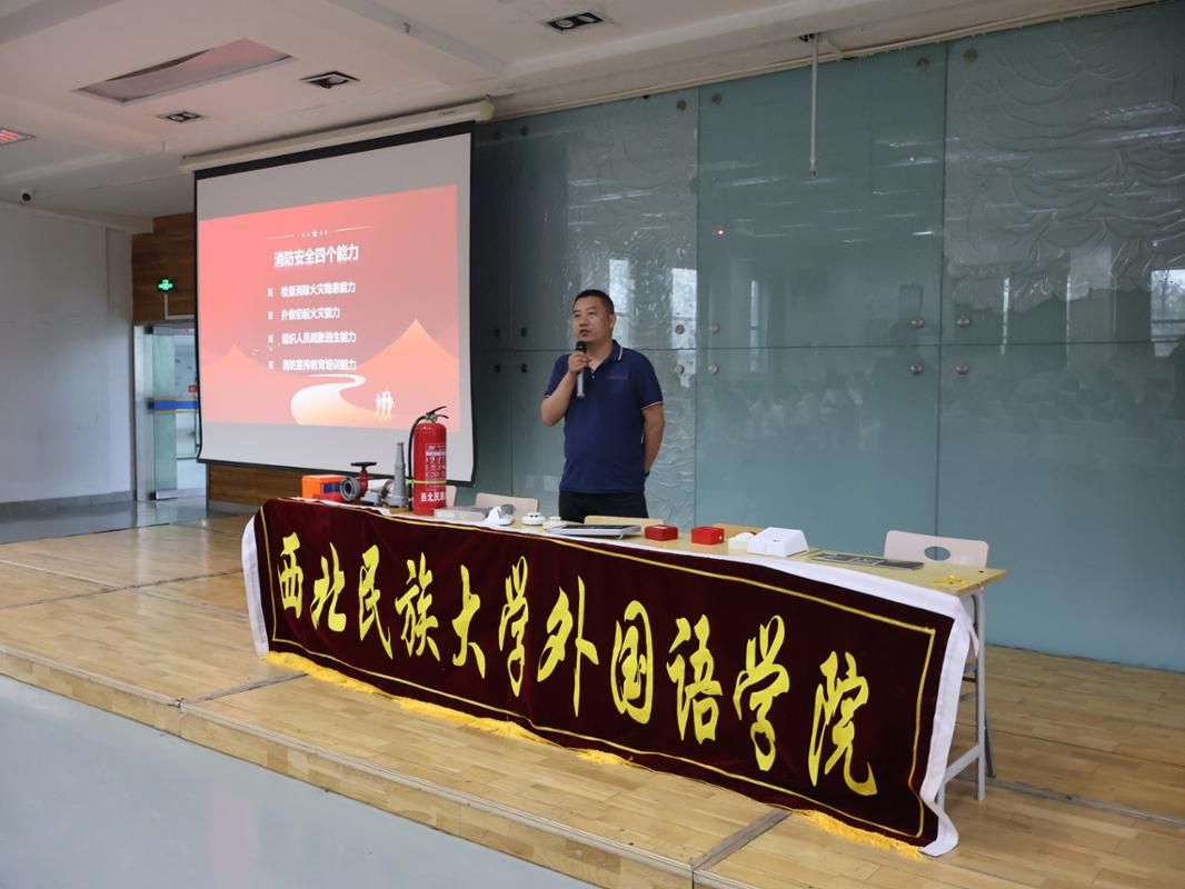 2026年4月22日,外国语学院与学校保卫工作部在致真楼101联合组织开展了消防安全知识培训。保卫工作部副部长李鹏、消防科钱隆老师、魏正平老师,学校维保公司经理张保军工程师,副处级辅导员黎林以及各年级学生代表共同参与。培训由张保军老师担任主讲。