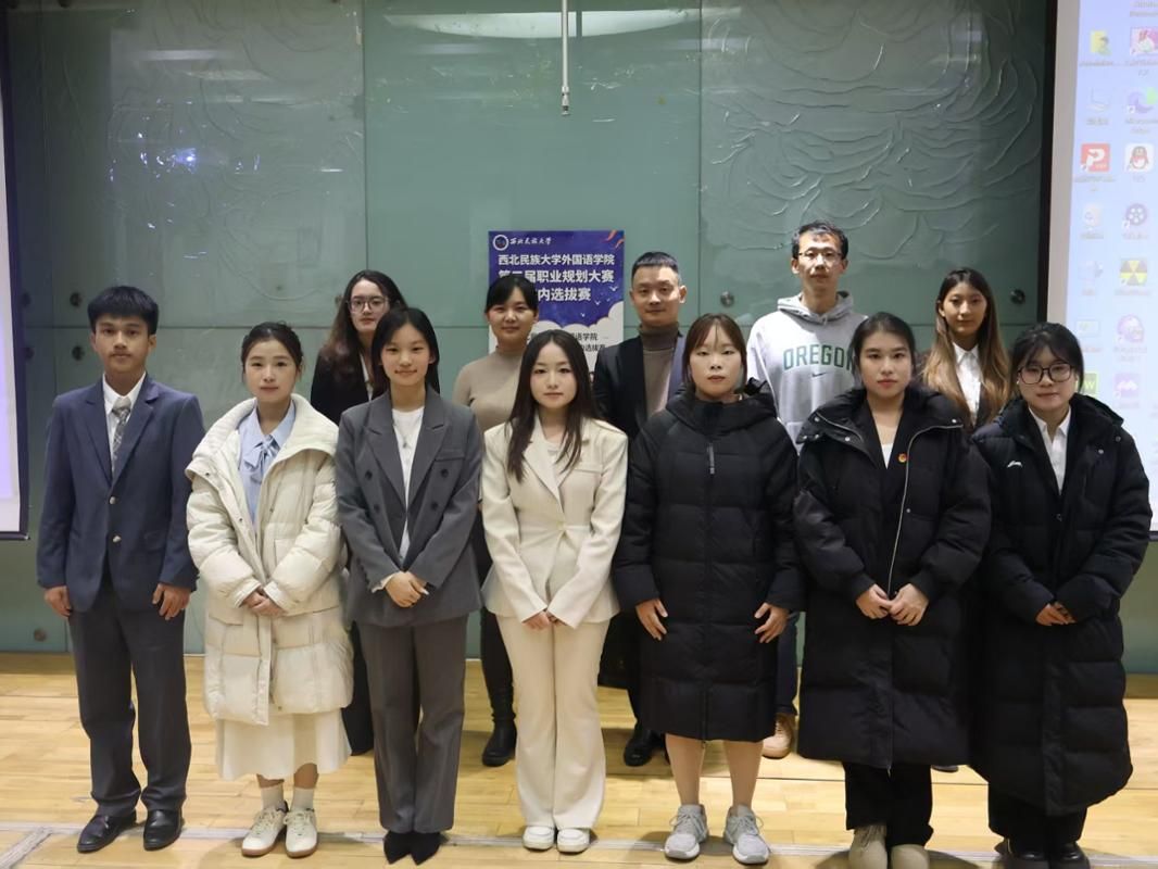 2025年11月27日,外国语学院第三届职业规划大赛院内选拔赛决赛在致真楼101室圆满举行。本次大赛特邀学院党委副书记马佳、土木工程学院辅导员王铮、阿拉伯语系买通老师及学院辅导员康维华组成评委团,参赛选手与师生观众齐聚现场,氛围热烈有序。
