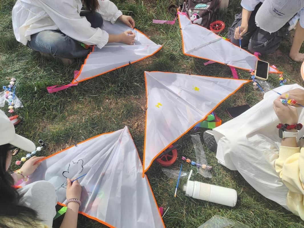 活动期间,工作人员为每位参与者发放制作风筝的材料包,同时在现场指导风筝的制作方法,吸引了众多在校学生的积极参与。同学们手持风筝线,奔跑、欢笑,每一个动作都充满了对生活的热爱与对未来的憧憬。风筝在空中翱翔,仿佛也带着大家的烦恼与压力一同飘散。