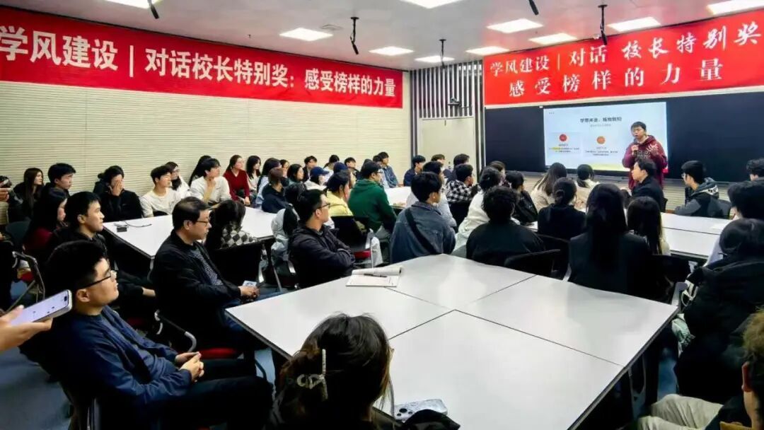 “原来校长特别奖得主就在身边,学长学姐的经验让我对未来规划豁然开朗。”“互动环节太精彩了,这种面对面的深入交流太有用了”“学长分享的时间管理、抗压方法极具实操性,令我对未来学习规划更加清晰。”作为辅导员,看到学生们打开心扉,畅所欲言,真的感动!小规模形式让每个人都有充分表达的机会,让交流更真实、更有针对性。