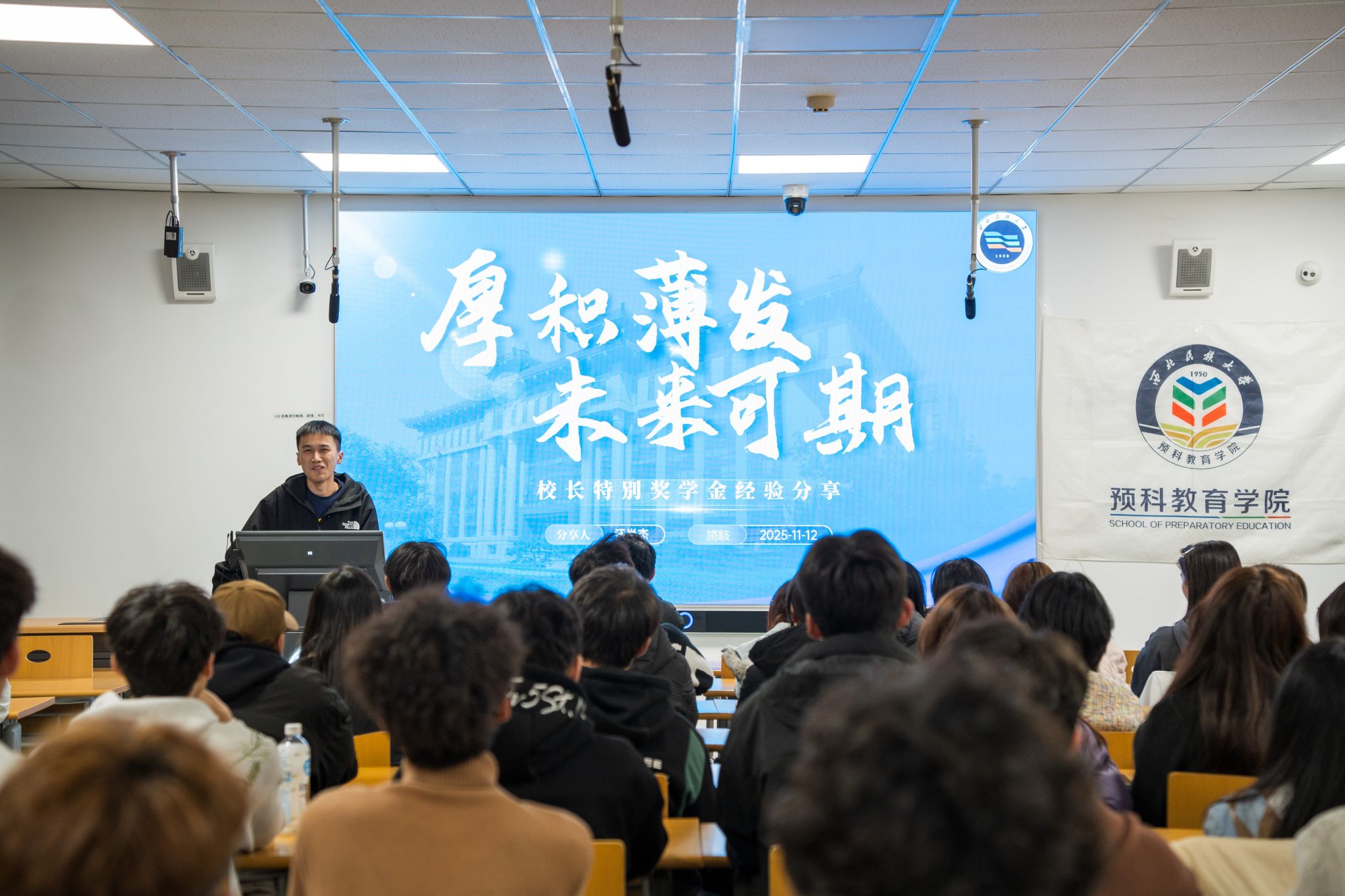 活动中,4位校长特别奖获得者结合各自专业的学习感悟,从学科方向、专业特点、核心优势、学习难点等方面进行解析,用清晰的逻辑和鲜活的案例为同学们勾勒出不同专业的学习图景。分享过程中,他们倾囊相授,不仅详细拆解了夯实基础课程的核心方法、高效学习习惯的养成路径和校内外学习资源的整合利用等关键内容,更坦诚分享了自身从学业起步到斩获荣誉的奋斗心路,既有攻克难题的坚韧执着,也有规划迷茫时的调整突破,让在场同学深切感受到榜样并非遥不可及,而是源于日复一日的积累与坚守。这场干货满满的分享,为预科学子搭建起一座从预科平稳过渡到本科的“学业桥梁”,让大家对未来专业学习有了更具体、更清晰的认知。