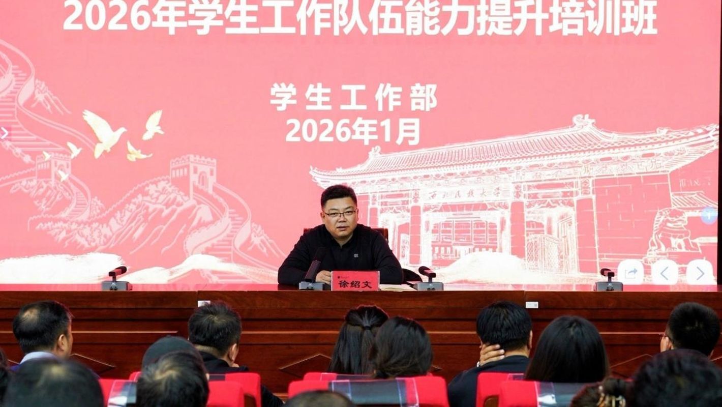 为进一步提升学生工作队伍的专业素养与育人能力,推进辅导员队伍专业化职业化建设,1月15日至16日,学校成功举办2026年学生工作队伍能力提升培训班(第一期)。党委副书记、副校长徐绍文出席培训并讲话,学生工作部、校团委有关负责人、全体辅导员及新聘任班导师参加培训。