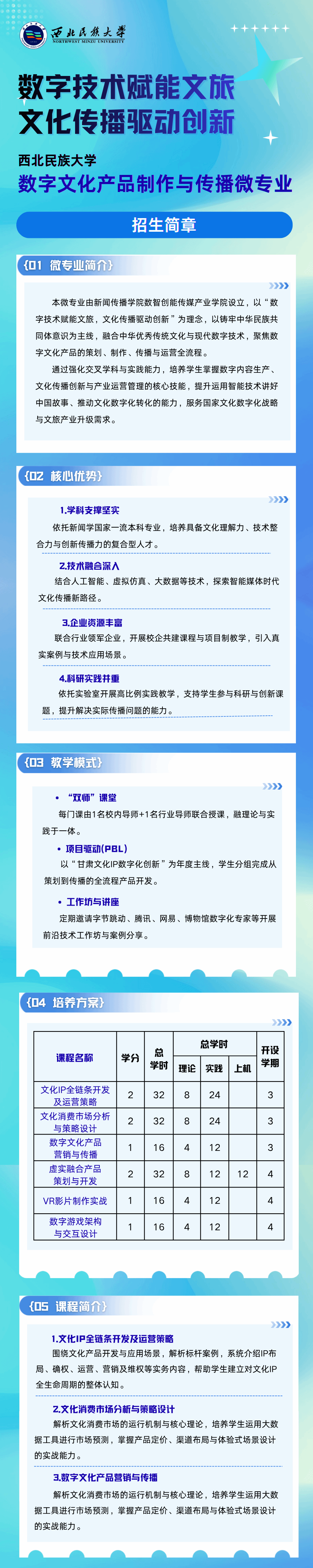 数字技术赋能文旅 文化传播驱动创新——西北民族大学数字文化产品制作与传播微专业招生简章正式发布!