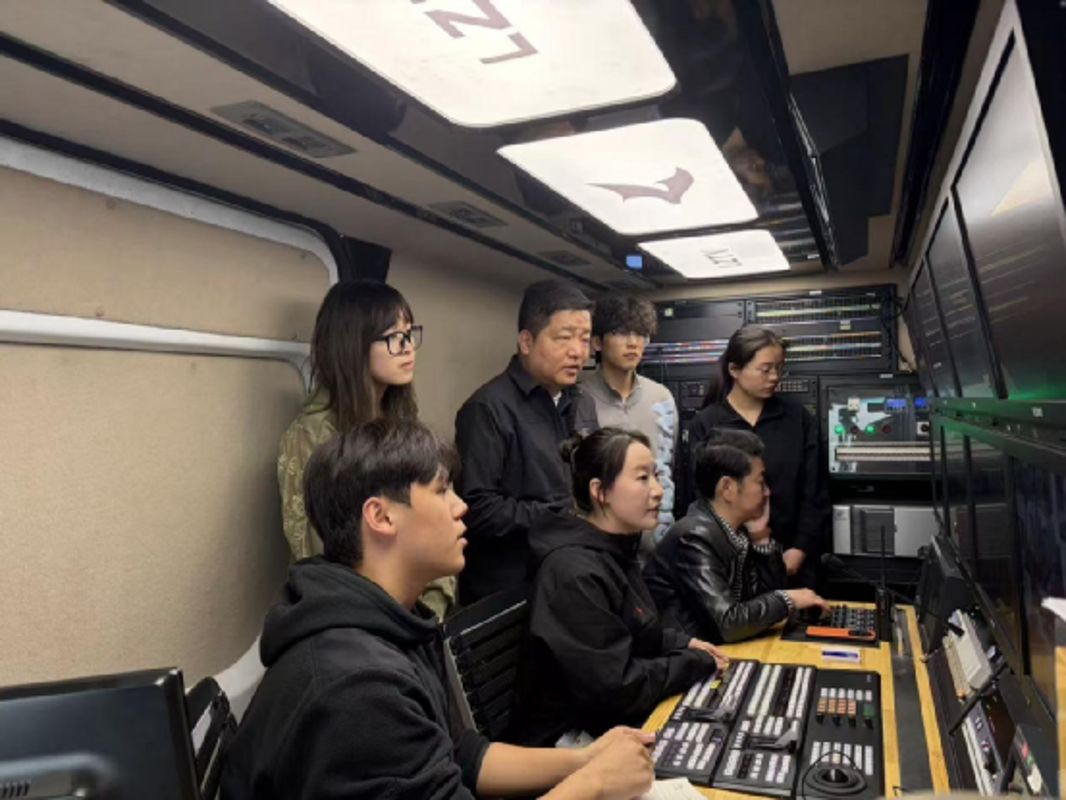 学生在导播车进行录制操作