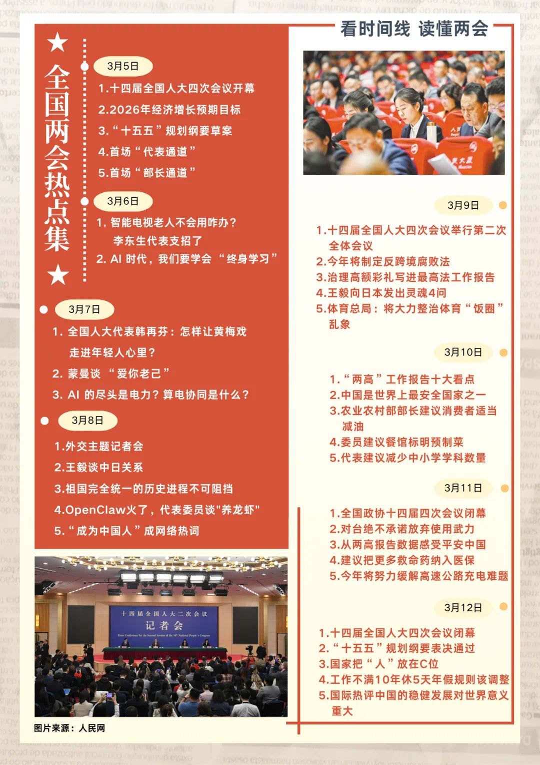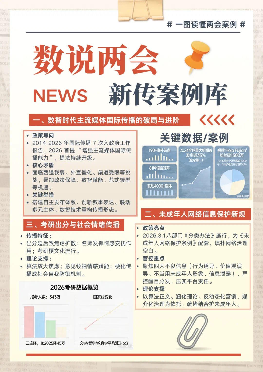 新传学子 看两会 热词/热点/快讯/案例 【编者按】2026年全国两会(十四届全国人大四次会议、全国政协十四届四次会议)圆满闭幕。作为国家政治生活中的大事,两会是践行全过程人民民主、凝聚奋进力量的重要平台。我院新闻传播学院学子以专业视角关注盛会、读懂时代,运用数据挖掘、信息可视化等数图新闻创作方式,用青春语态与专业技能解读两会热点,以直观清晰的可视化表达传递时代声音,展现新时代新传青年的专业素养与使命担当。