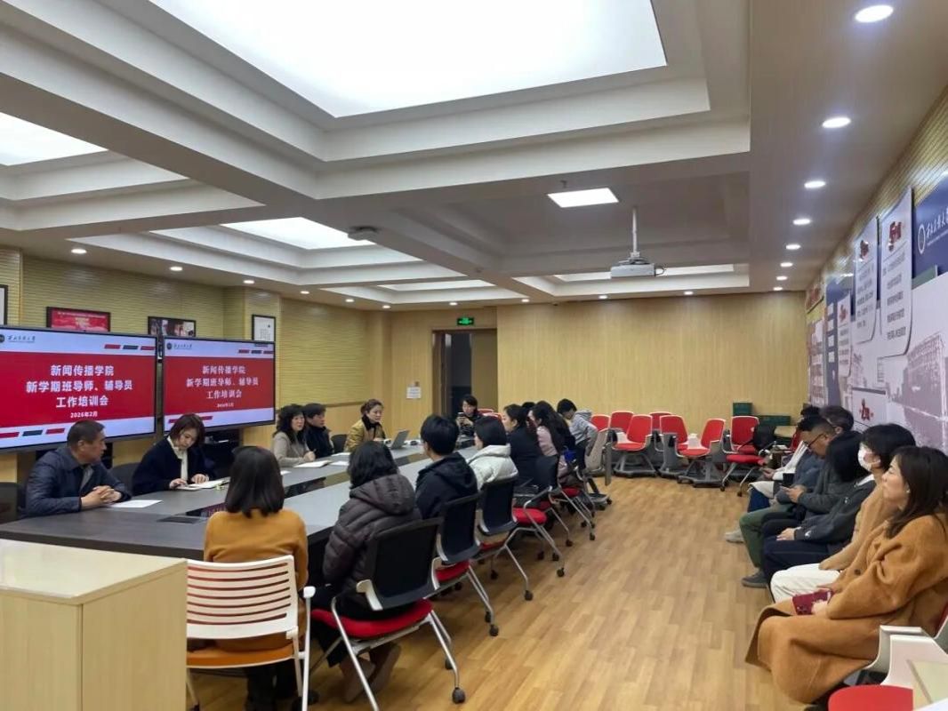 2月28日上午,新闻传播学院在西北新村校区文津楼101召开新学期首次辅导员、班导师工作例会暨学生工作领导小组会议。学院领导班子、全体班导师及辅导员参加会议,围绕新学期学生工作进行全面部署。
