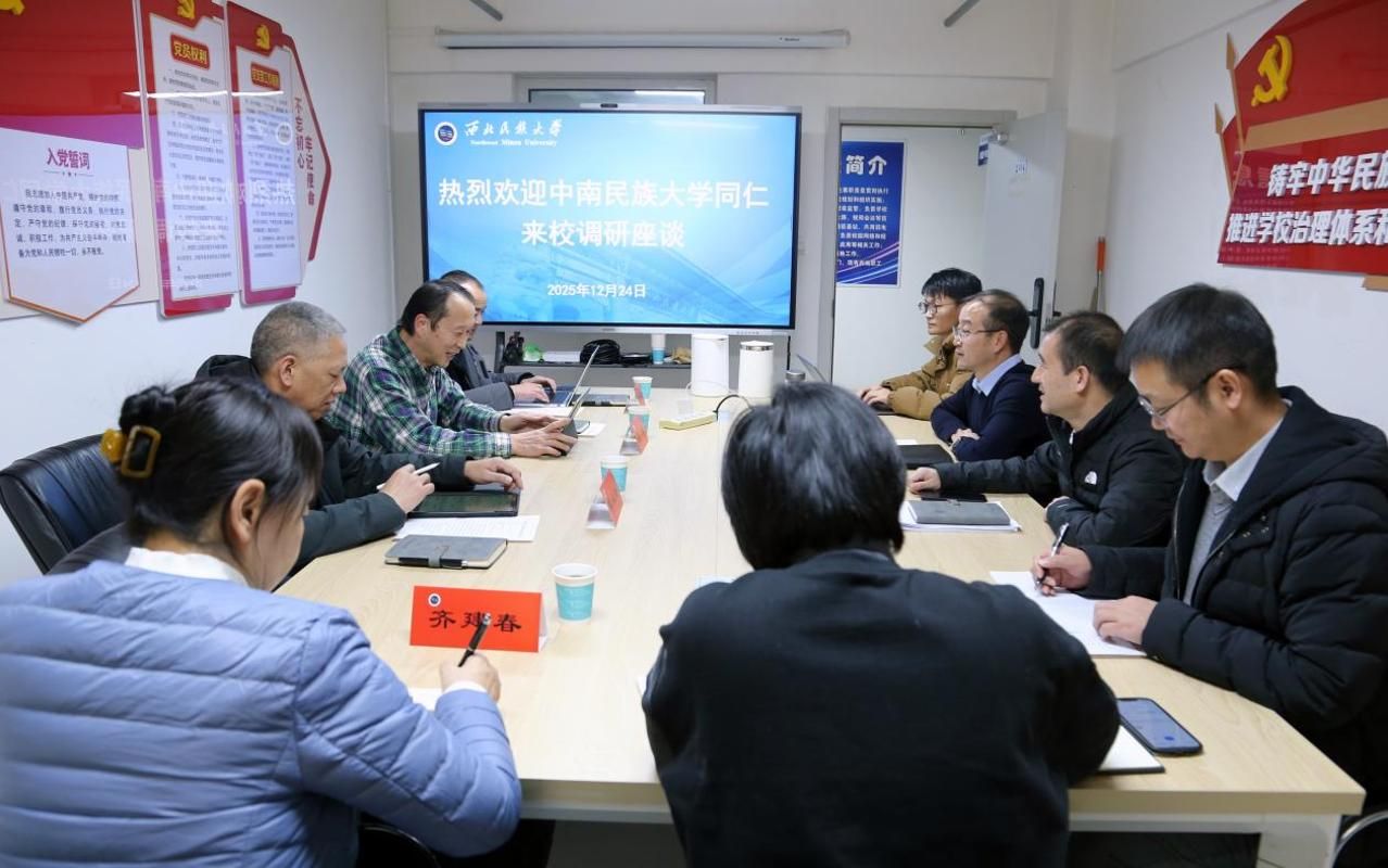 12月24日,中南民族大学信息化建设管理处处长张淼、副处长喻胜辉,采购与招投标中心主任陈心浩一行三人来校调研信息化及智算中心建设工作。学校信息化建设工作处处长马强、国有资产管理处处长马国柱及信息化建设工作处相关工作人员参加座谈交流。