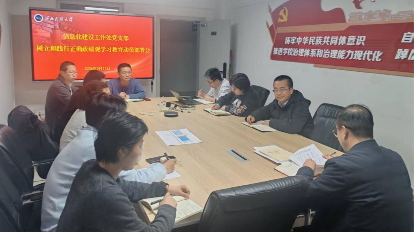 会议传达学习了中央党的建设工作领导小组会议精神、学校党的建设工作领导小组(扩大)会议精神以及《西北民族大学开展树立和践行正确政绩观学习教育工作方案》,审议通过了《信息化建设工作处党支部开展树立和践行正确政绩观学习教育工作方案》。