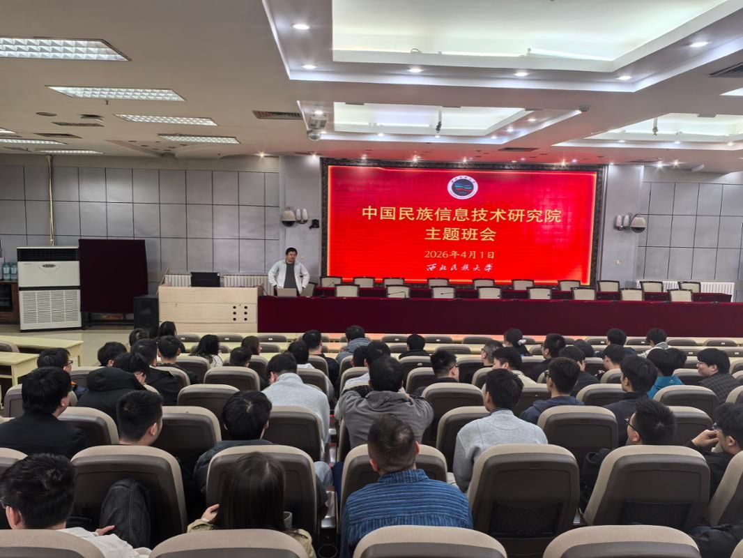 2026年4月1日,中国民族信息技术研究院在文津楼二楼学术报告厅开展“跨越九十年的对话—纪念长征胜利90周年暨清明节缅怀革命先烈”主题班会。