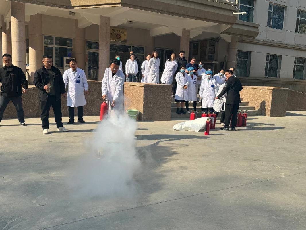 本次培训特邀兰州政安防火知识宣传中心中级讲师韩三军授课。培训围绕《消防法》《消防安全责任制实施办法》及消防“四个能力”等政策法规,系统讲解了防火灭火、逃生疏散、自救互救等核心知识,并现场演示灭火器、灭火毯等常规消防器材使用操作,切实提升职工安全防范与应急处置能力。活动期间,联合学校保卫工作部对医院重点区域开展安全生产与消防安全隐患排查,从源头筑牢风险防控屏障。