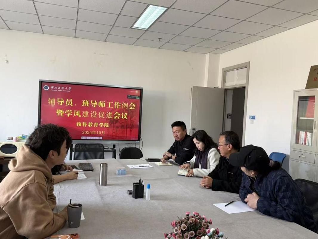 2025年10月29日,预科教育学院召开辅导员、班导师工作例会暨学风建设推进会议,学院党总支书记、全体辅导员、班导师及专任教师代表参会。