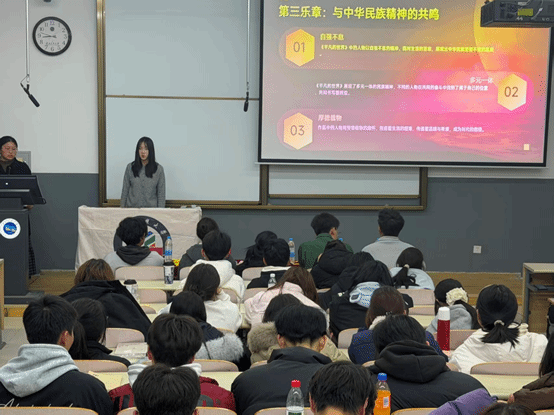 理科四班团队围绕《边城》展开分享,提炼书中湘西水乡的淳朴民风与人物间的真挚情感,展现平凡生活中生命的纯粹与美好,指出各民族在漫长历史中形成的多元文化,如同书中温润的生命图景,共同构成中华民族共同体的丰富内涵,各民族互帮互助、相亲相爱,方能奏响和谐共生的生命乐章。互动问答环节,团队针对“文学作品中民族文化与生命价值的关联”与学生交流,传递珍爱生命与文化认同的理念。