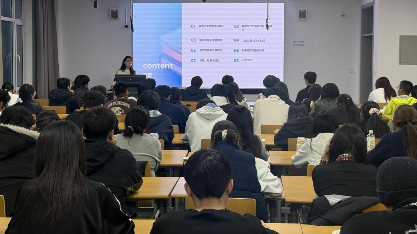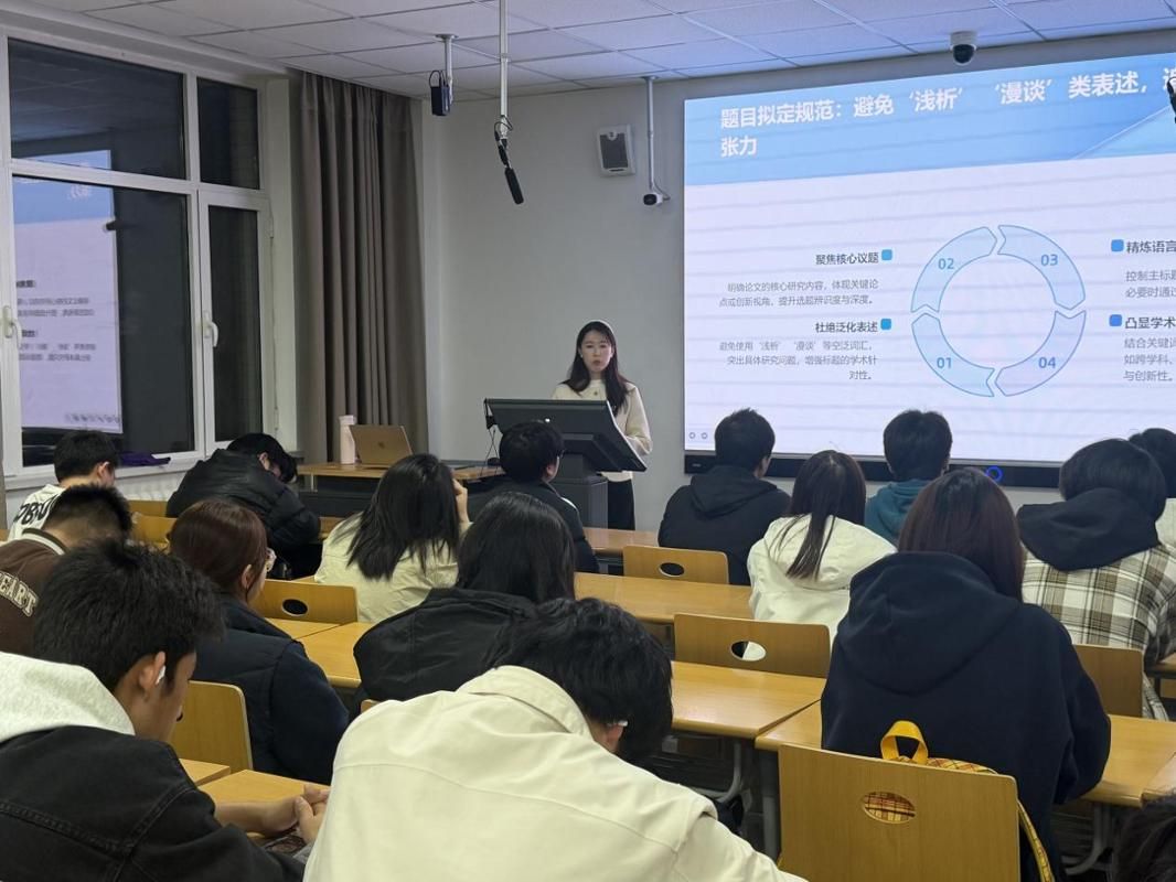 为帮助预科学生奠定学术论文写作基础,掌握规范的论文写作方法,提升学术素养与科研能力,2026年4月1日,魏佳慧老师在博雅楼210教室举办“学术论文写作规范与实践指导”专题讲座,预科教育学院80余名学生到场参加学习。