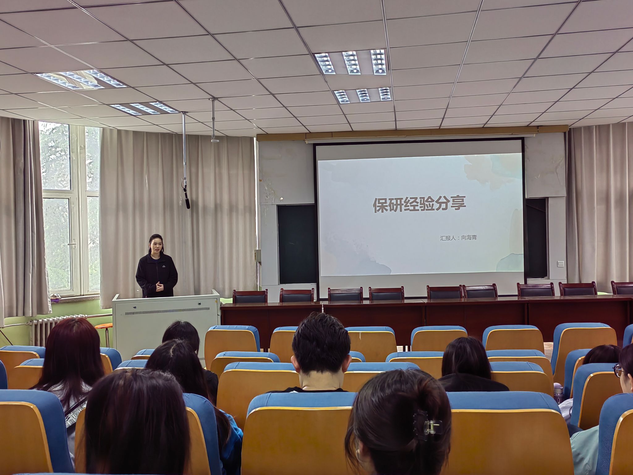 在经验分享环节,已成功保研的向海青同学结合自身经历,详细分享了保研的准备过程、材料撰写技巧、夏令营参与经验及面试注意事项,为有志于推免的同学提供了宝贵的一手参考。随后,唐祖惠同学从考研备战角度出发,围绕复习计划制定、科目备考方法、心态调整策略及复试准备要点等方面进行了细致分享,其切身经历与务实建议赢得了在场同学的共鸣。
