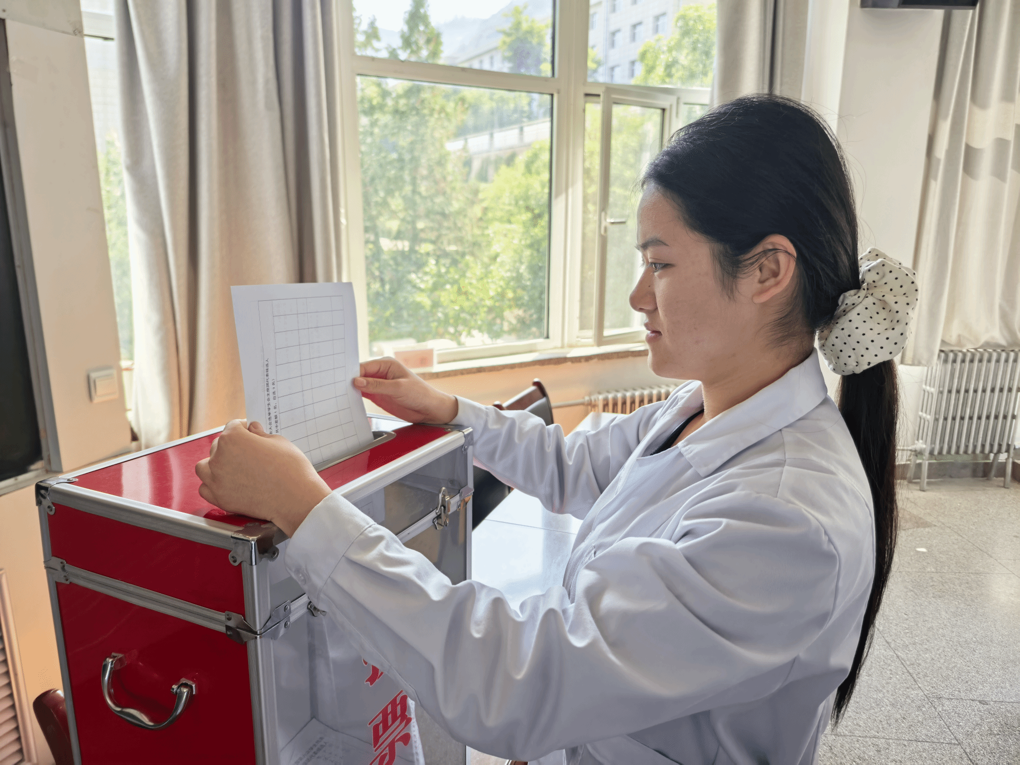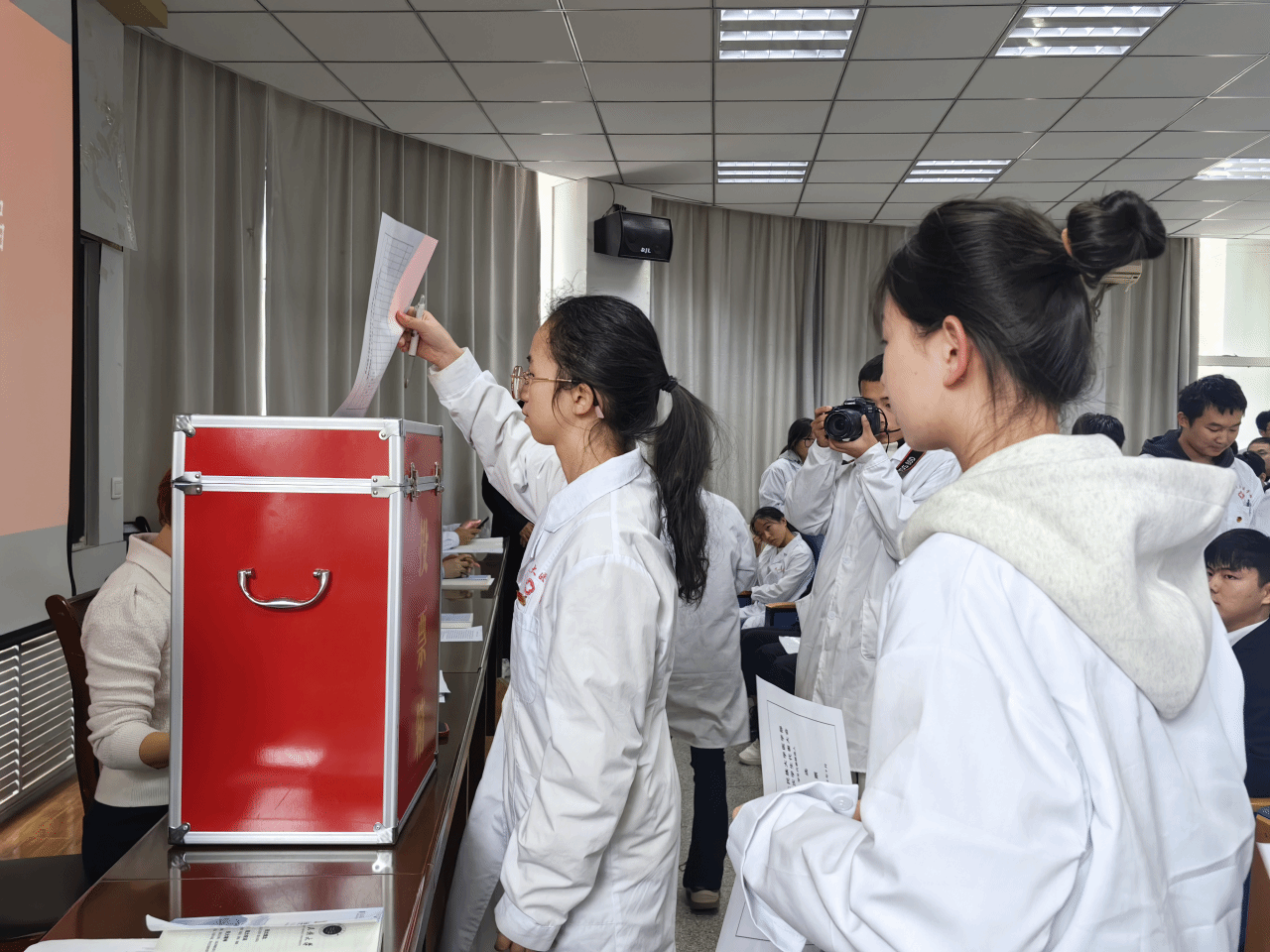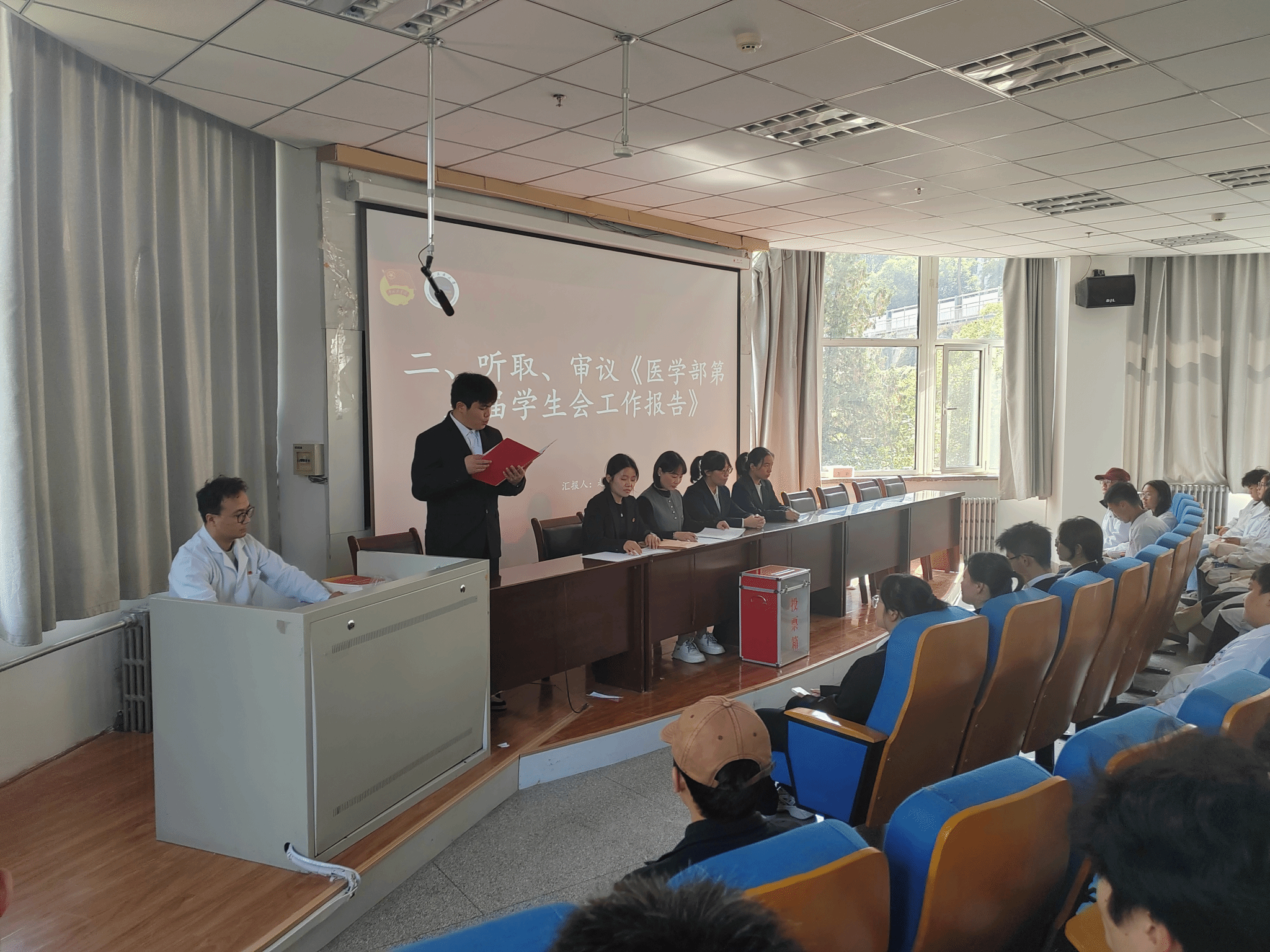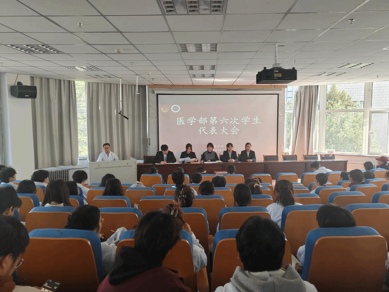 2025年10月15日中午,医学部第六次学生代表大会在庄严而热烈的氛围中隆重举行。125名来自各年级、各专业的学生代表身着白大褂,精神饱满齐聚,肩负全体学子信任与期望参会。