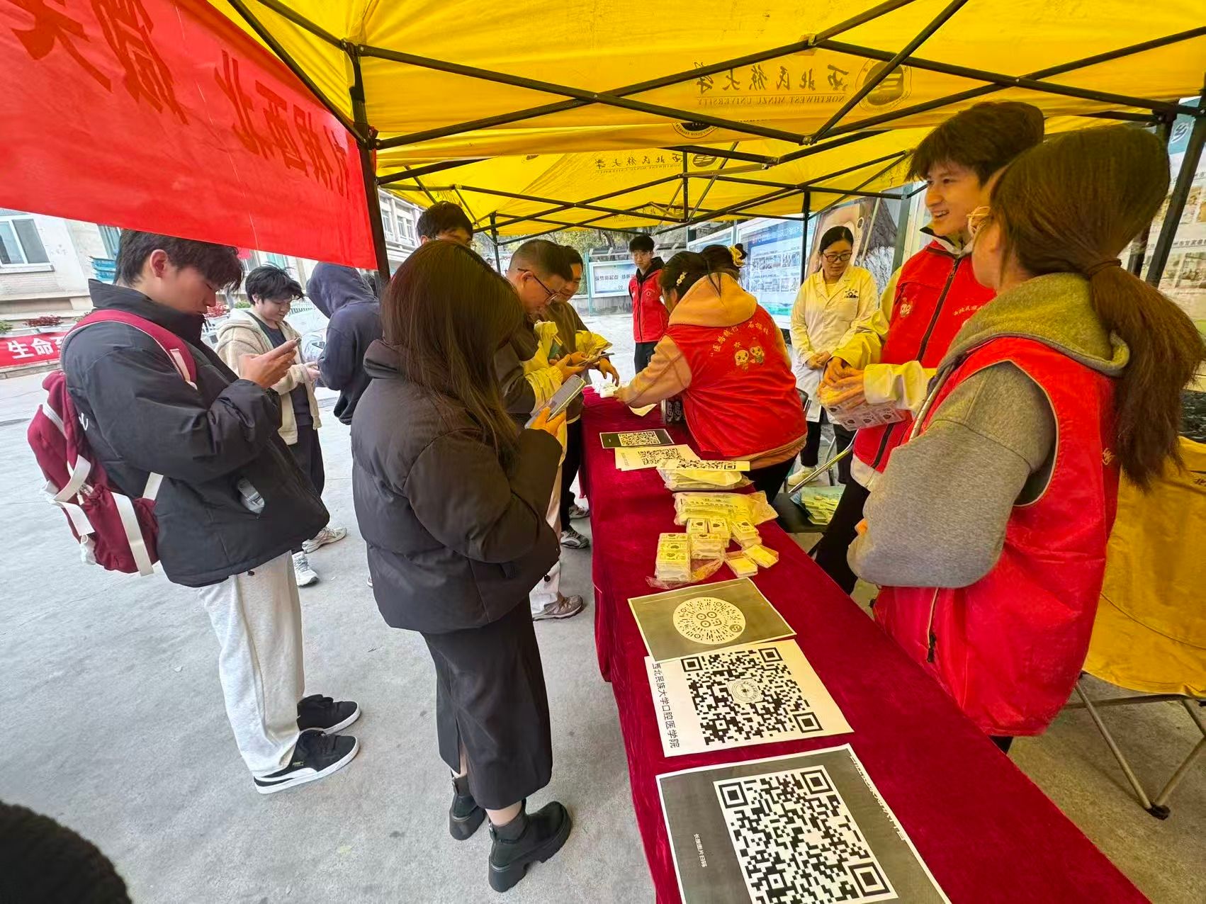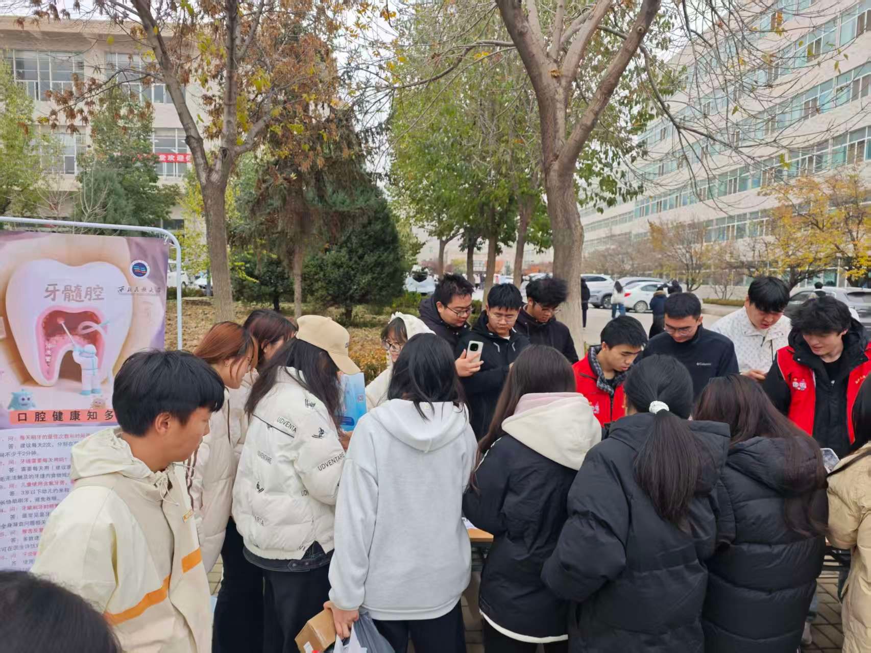为提升大学生口腔健康意识、普及保健知识,11 月 8 日,在校团委、医学部的指导下,爱牙协会在西北新村校区文溪楼前与榆中校区留香食堂前同步开展“守护口腔健康,让笑容‘齿’久灿烂”科普义诊活动。