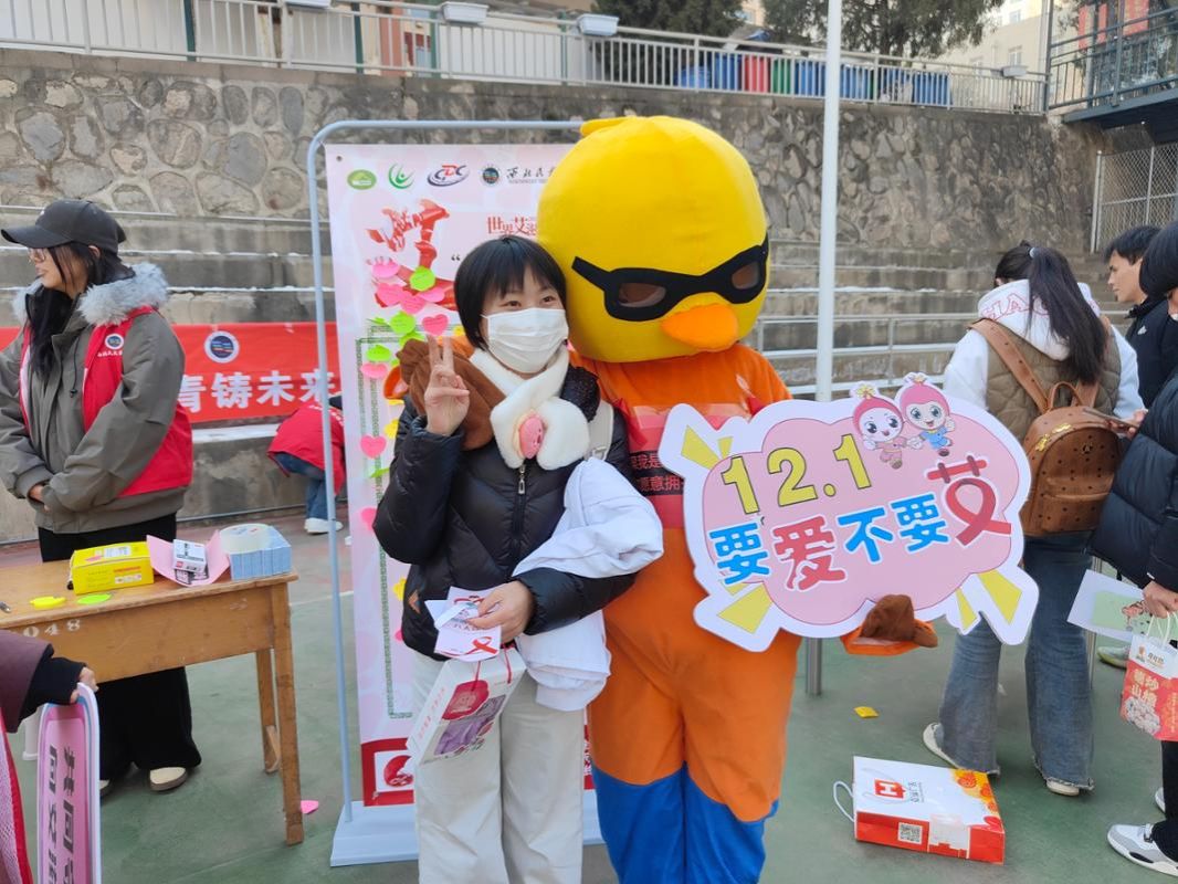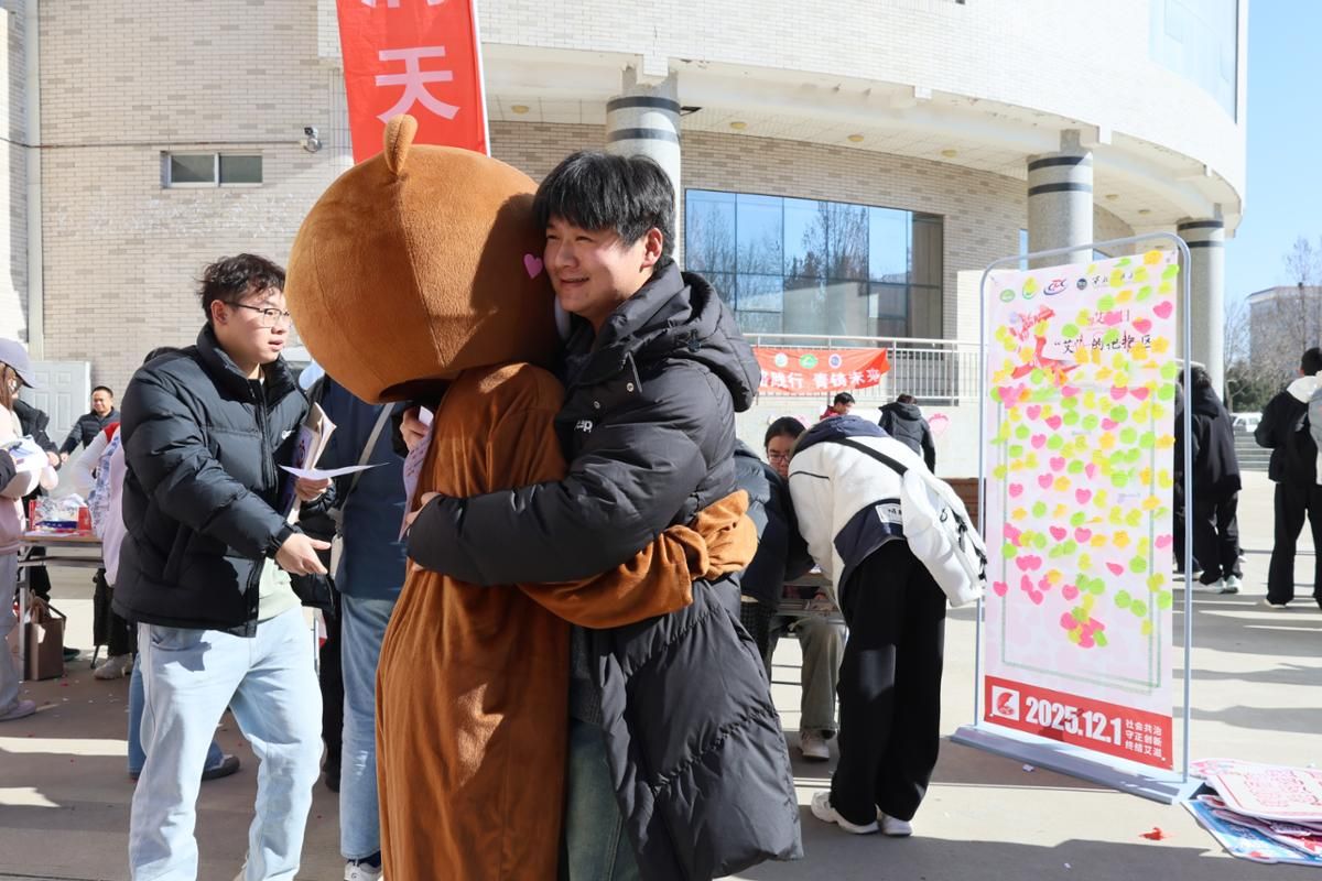 校医院医师及疾控中心专业人员现场答疑解惑,师生完成专区任务集章可兑换套圈,在互动中掌握防艾核心知识,同时通过书写抗艾感悟、与志愿者合影等方式,传递对艾滋病感染者的理解与关爱。