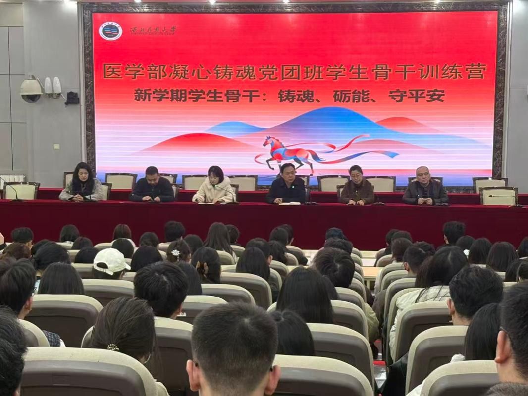 3月2日13:00,医学部凝心铸魂党团班学生骨干训练营第三次课在文津楼学术报告厅开讲,课程以“铸魂 砺能 守平安”为主题,同步召开学部春季学期第一次学生骨干大会。学部党委副书记马鸿波,团委书记、辅导员及学生党员、学生干部等300余人参会,旨在夯实学生骨干履职能力,明确新学期工作方向。