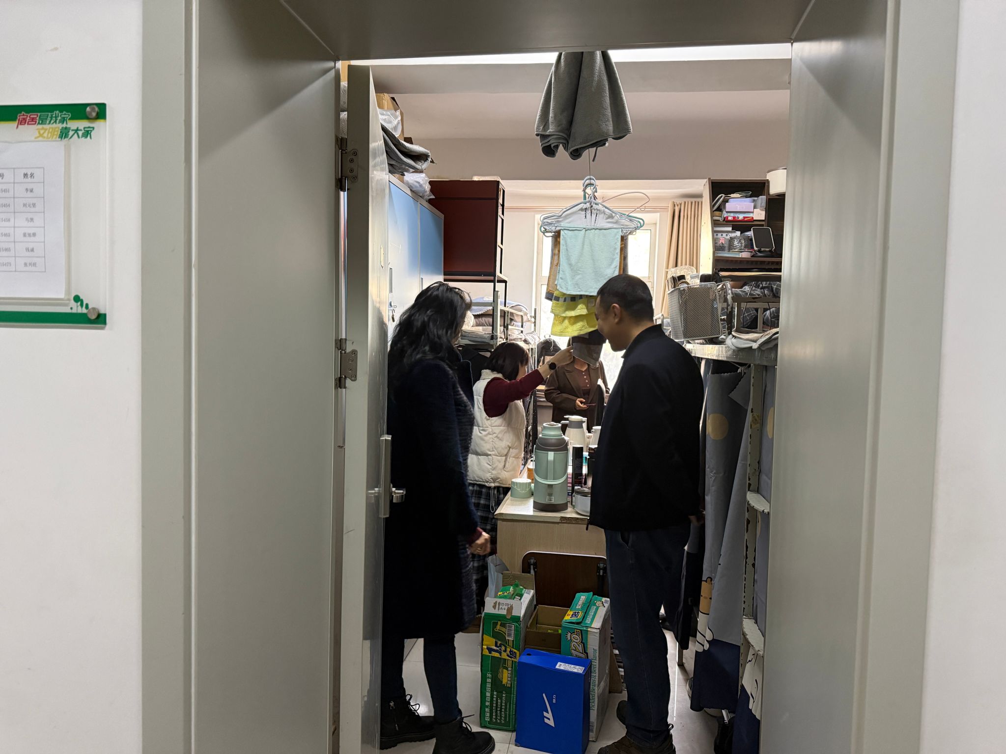 为进一步加强学生公寓安全管理,营造安全、文明、健康的居住环境,2025年11月11日下午,医学部组织辅导员、班导师对学生公寓五号楼进行了全面检查。本次检查重点检查宿舍内务卫生、学生晚归与未归情况。