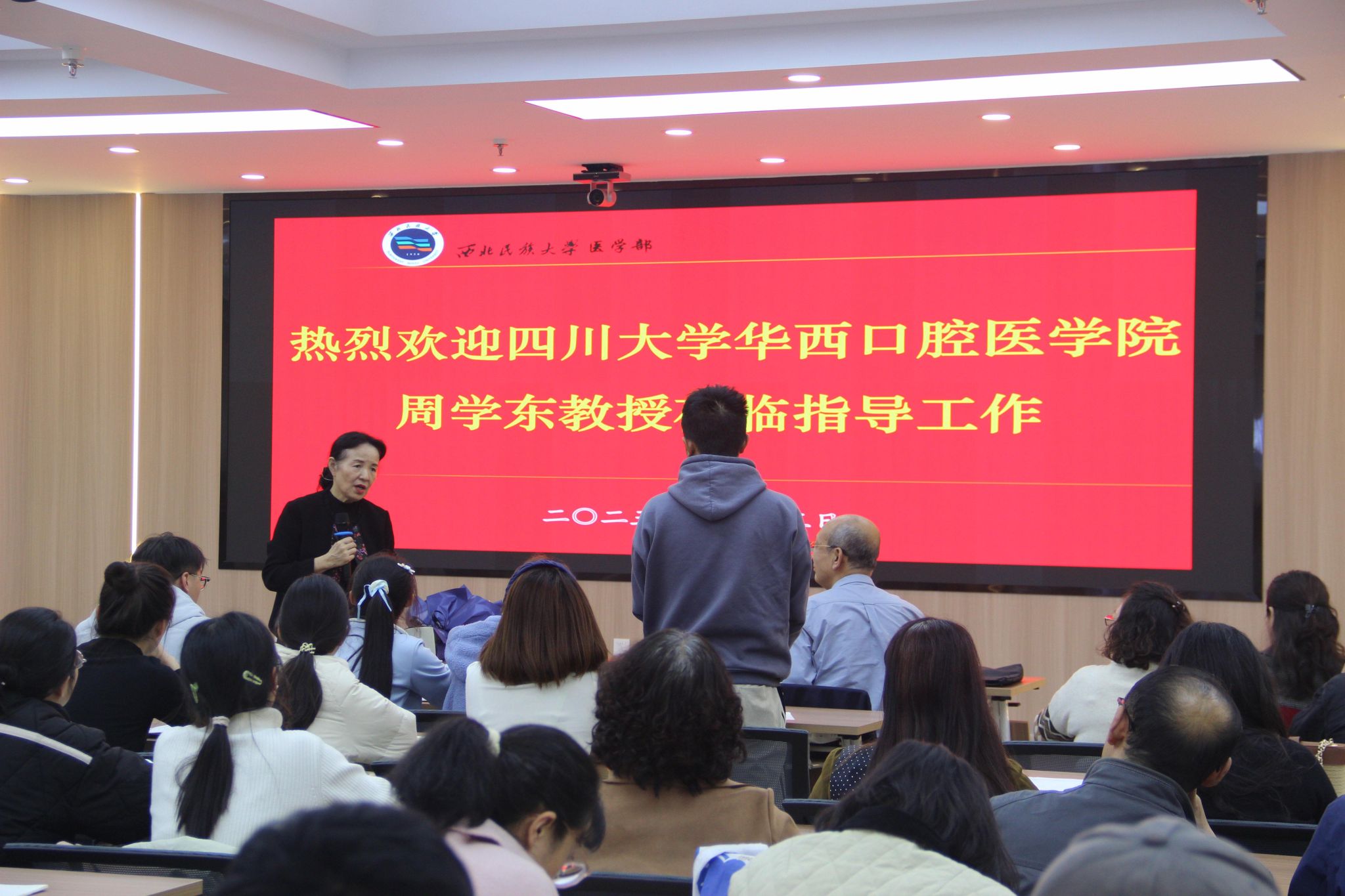 11月3日下午,国家教学名师、中国医学科学院学部委员、四川大学原党委副书记、华西口腔医(学)院学术院长周学东教授应邀为医学部口腔医学专业120余名师生讲授了题为《口腔医学的文化与前沿》的讲座,医学部副主任、口腔医(学)院院长宋天柱主持讲座。