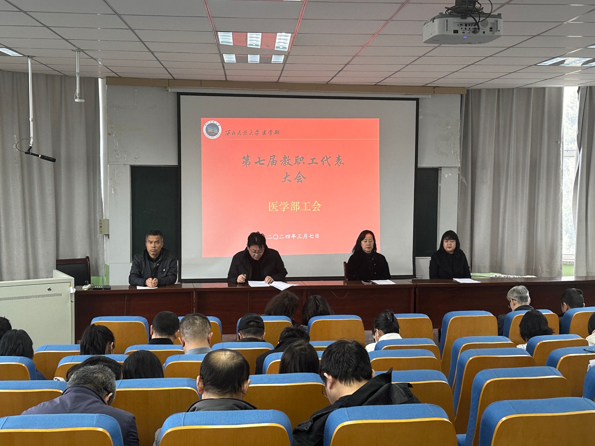 为进一步落实学校相关文件要求,引导教职工积极参与学校和医学部民主管理和监督,医学部于2024年3月7日下午,在医学部二楼会议室召开了第七届教职工代表大会。会议由学部党委副书记、工会主席杜国云同志主持。