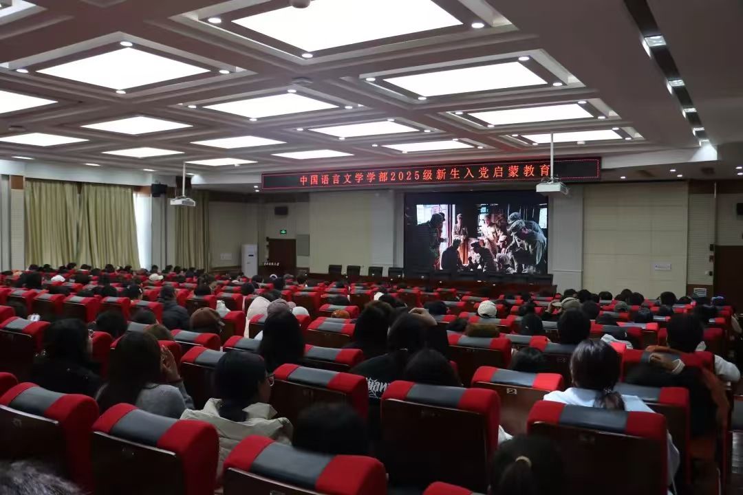 为深入落实立德树人根本任务,引导学生坚定理想信念、勇担时代使命,鼓励有志青年积极向党组织靠拢,2025年10月25日,中国语言文学学部面向2025级全体新生组织开展入党启蒙教育活动。学部党委副书记、学生管理办公室主任旦正才让同志、研究生兼职辅导员唐飞虎同志、学生党员代表韩进财同志及全体2025级新生参加本次活动。