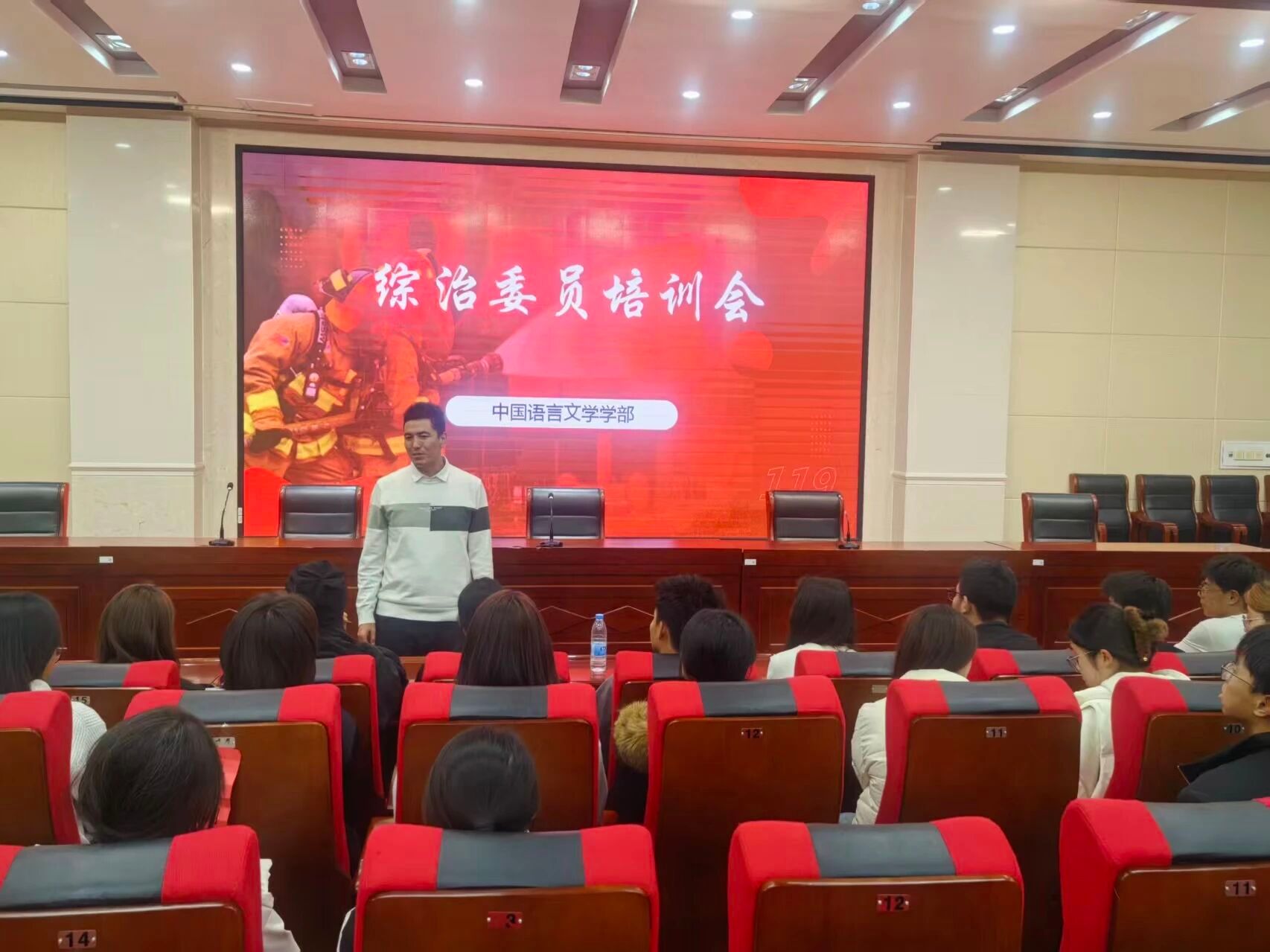 为进一步提升综治员队伍的专业工作能力,切实增强全体同学的安全防范意识,为平安校园建设夯实基础,11 月 5 日,中国语言文学学部在致真楼 125 教室召开综治员培训会。学部辅导员阿布力克木・喀吾孜受邀担任主讲人,学部全体综治员到场参与培训,共同为校园安全工作充电赋能。