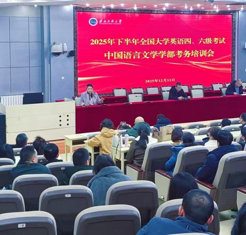 根据民大教字【2025】185号文件精神,应2025年下半年大学英语四、六级考试工作需要,中国语言文学学部于2025年12月11日19:30-20:30在文津楼学术报告厅开展监考教师培训会。本次培训会由学部副主任苏茜主持并讲解,全体2025年下半年大学英语四、六级考试教师参加。