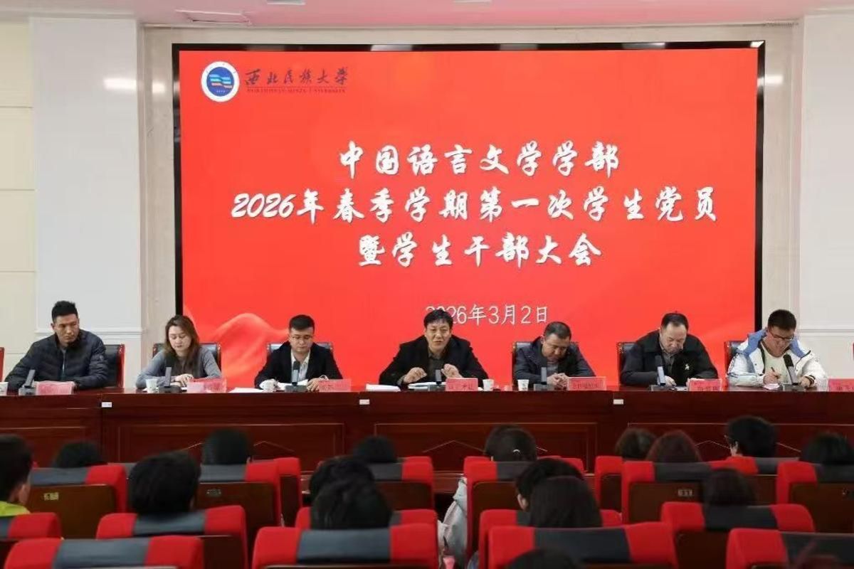 为统筹部署新学期学生工作,进一步凝聚学生骨干力量,3月2日,中国语言文学学部在致真楼125召开2026年春季学期第一次学生党员暨学生干部大会。学部党委副书记、学生工作办公室主任旦正才让,全体专职辅导员及学生党员、入党积极分子、综治委员、学生干部共计200余人参会,会议由团委副书记买热达尼主持。