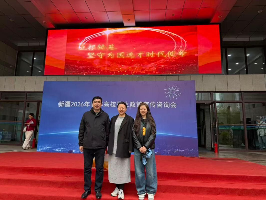 为积极响应教育部“高考护航行动”号召,做好2026年本科招生宣传工作,搭建高校与考生之间高效便捷的沟通桥梁,我校教务处招生科杨丽霞一行于4月18日赴新疆乌鲁木齐参加由新疆教育考试院主办的“新疆2026年春季高校招生政策宣传咨询会”。中国语言文学学部教师买合苏提·色来木参加此次大型招生咨询活动。