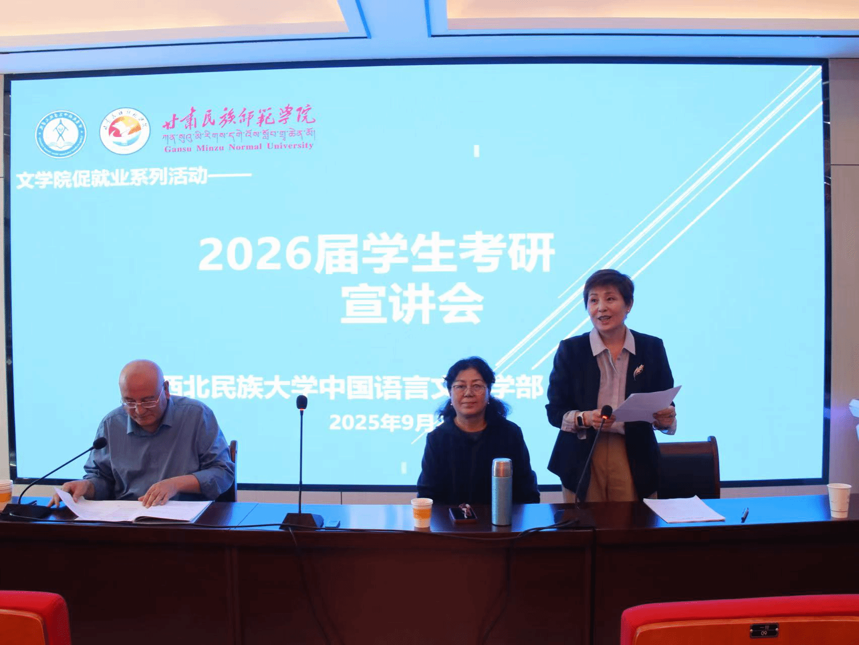 为帮助有志于考研的学子们理解考研政策、掌握兄弟院校专业优势,9月26日下午,西北民族大学中国语言文学学部宁梅教授、多洛肯教授,在甘肃民族师范学院文史楼518会议室,为该校学生带来了考研专场宣讲会。
