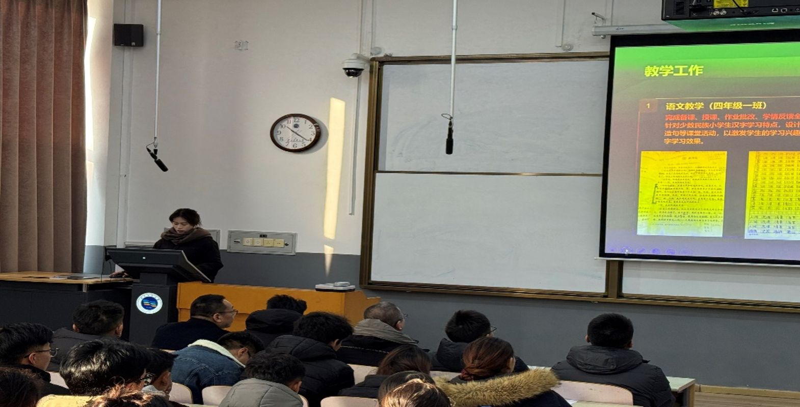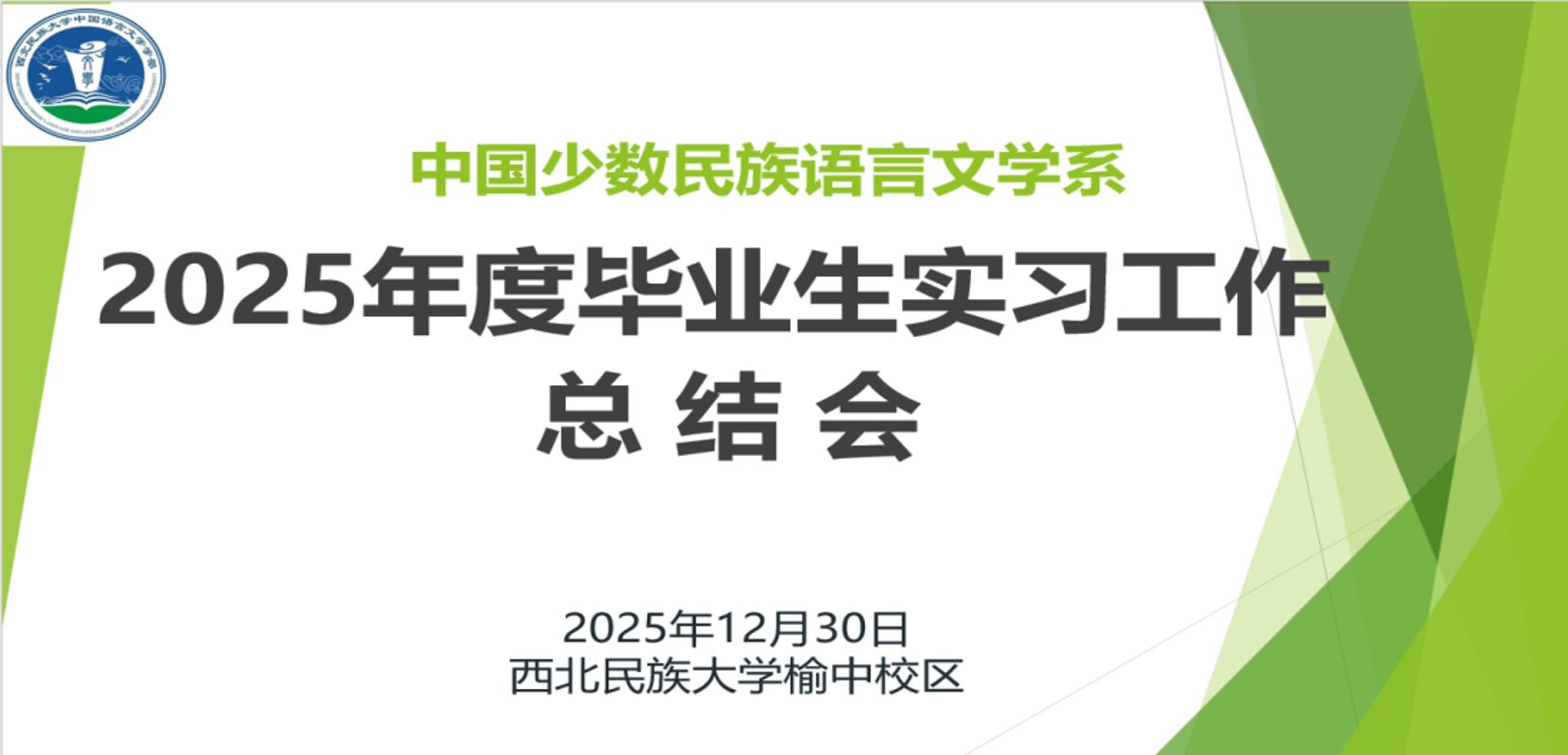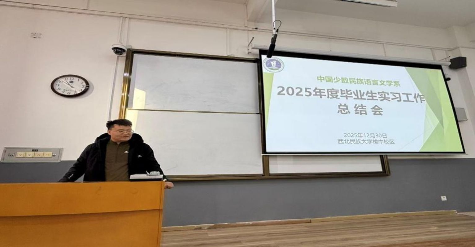 2025年12月30日上午,中国语言文学学部少数民族语言文学系在榆中校区致真楼116教室成功举办2026届毕业实习工作总结会。本次会议旨在全面总结本届毕业生实习工作,搭建师生互动、经验共享的平台,助力同学们规划职业发展。会议由夏吾拉旦老师主持,学部相关实习指导教师、2022级全体实习生以及2023级本科生共80余人参加。