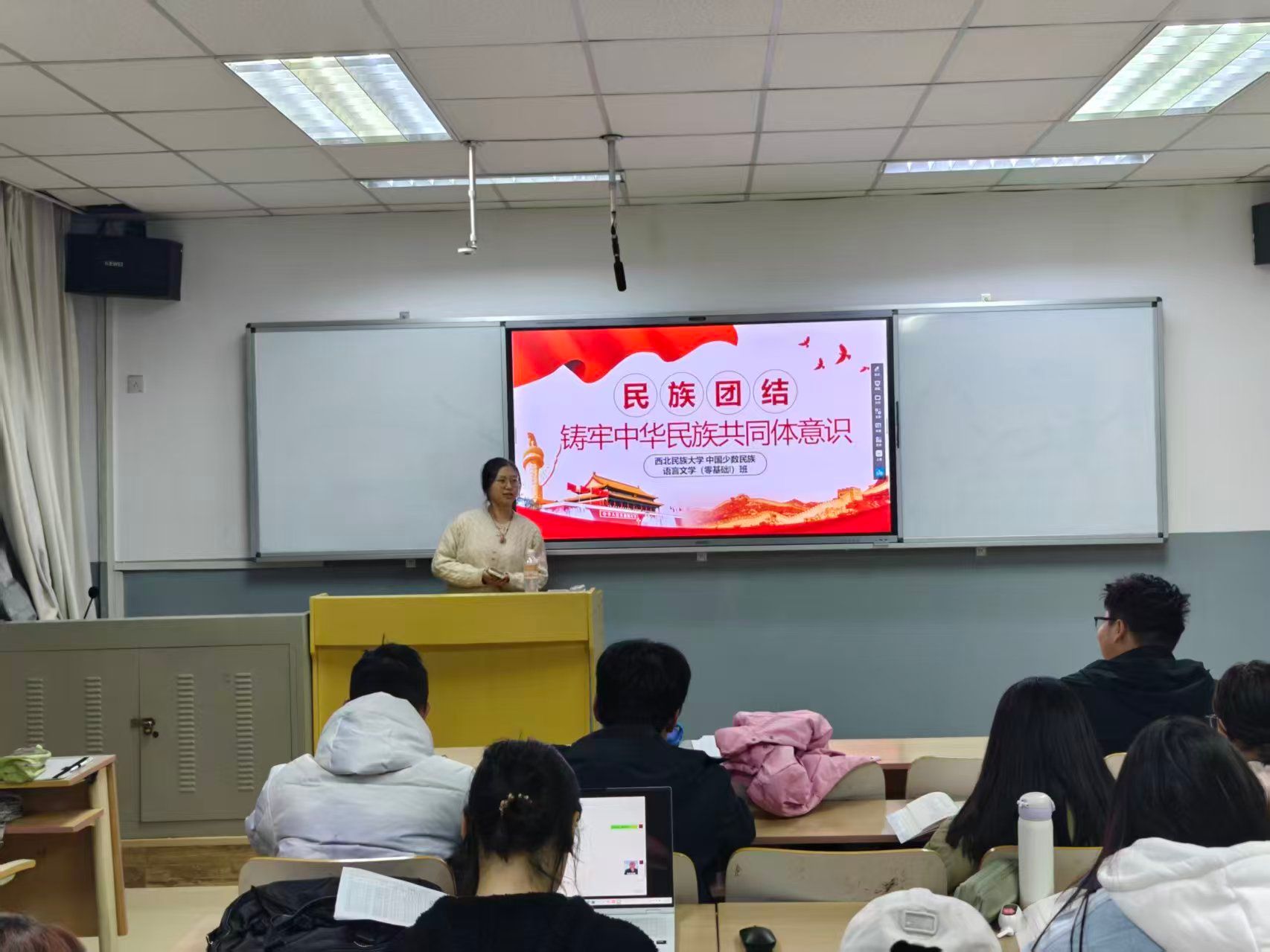 为深入推进第30个民族团结进步教育月系列活动,近日,中国少数民族语言文学(零基础Ⅰ)班团支部利用晚自习时间,组织开展了为期数周的“学手册、明规范、践初心”主题团日系列活动。本次活动以《学生手册》为核心内容,通过班团干部分板块领学、多媒体展示、互动答疑等形式,全面系统地深化了同学们对校规校纪、奖惩制度、校园管理、宗教信仰政策及铸牢中华民族共同体意识的理解,取得了显著成效。
