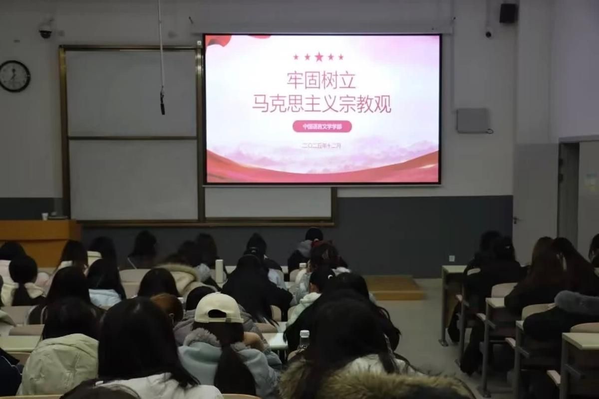 为筑牢青年学子信仰根基,搭建理论学习与思想交流平台,12月16日,中国语言文学学部在致真楼107教室举办主题团日活动,集中学习“牢固树立马克思主义宗教观”与“学校第七次党代会精神”。此次活动有学部150余名学生参与。