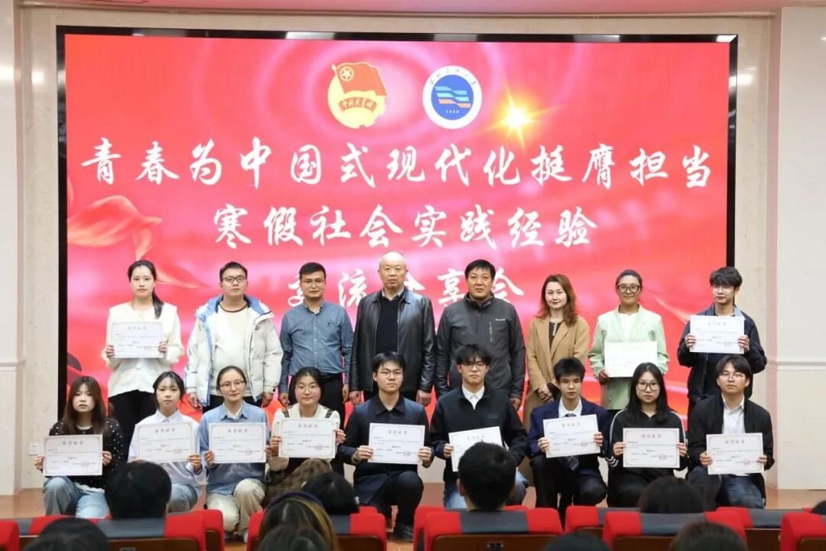 学部党委书记丁胜为寒假社会实践表现突出的12名同学颁发荣誉证书并合影留念。在经验分享环节,优秀学生代表依次登台,结合实践经历畅谈感悟收获,为在场同学提供了鲜活范例与宝贵经验。