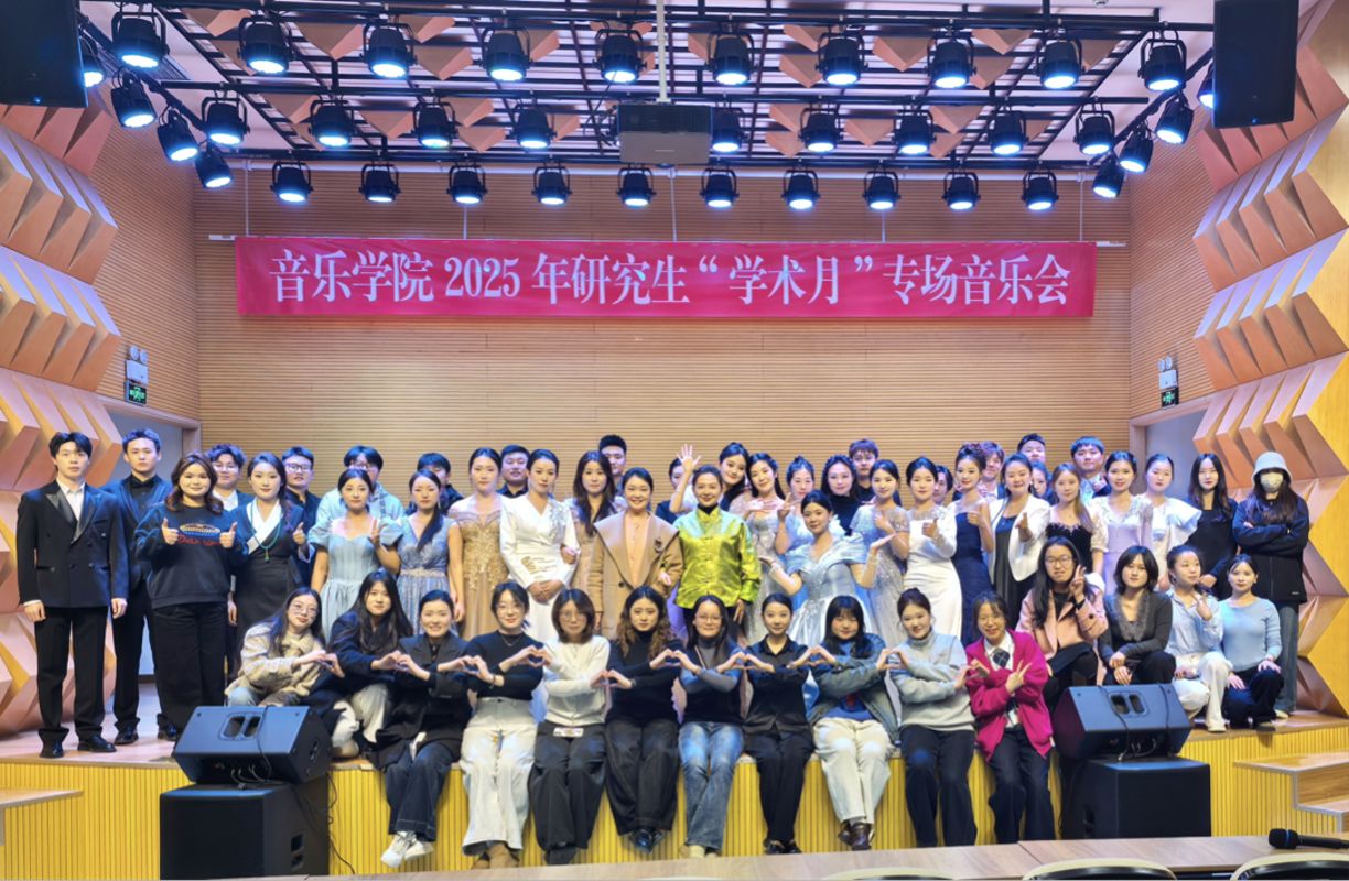 2025年11月13日,学院成功举办2025年研究生“学术月”专场音乐会。 整场音乐会历时3个小时,主持人田亚男、刘骐玮。共表演了《千里》《情姐下河洗衣裳》《雨滴》《敦煌》《跑旱船》等31首作品,其中器乐演奏作品9首,声乐作品中民歌3首、美声歌曲10首、流行歌曲3首、重唱4首、京剧选段歌曲2首。