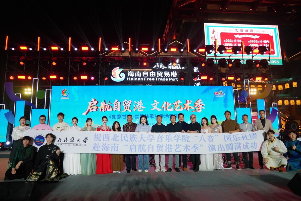 近期,学院“八音”国乐学生社团师生一行18人,应海南省旅游和文化广电体育厅邀请,赴海口、三亚参与“启航自贸港艺术季”系列文化艺术展演,献上《如意甘肃·丝路弦歌》专场音乐会。1月24日、26日、28日,团队接连在两地登台,用民族器乐演绎丝路文化与陇原风情,实现丝路古韵与椰岛新风的美好交融。